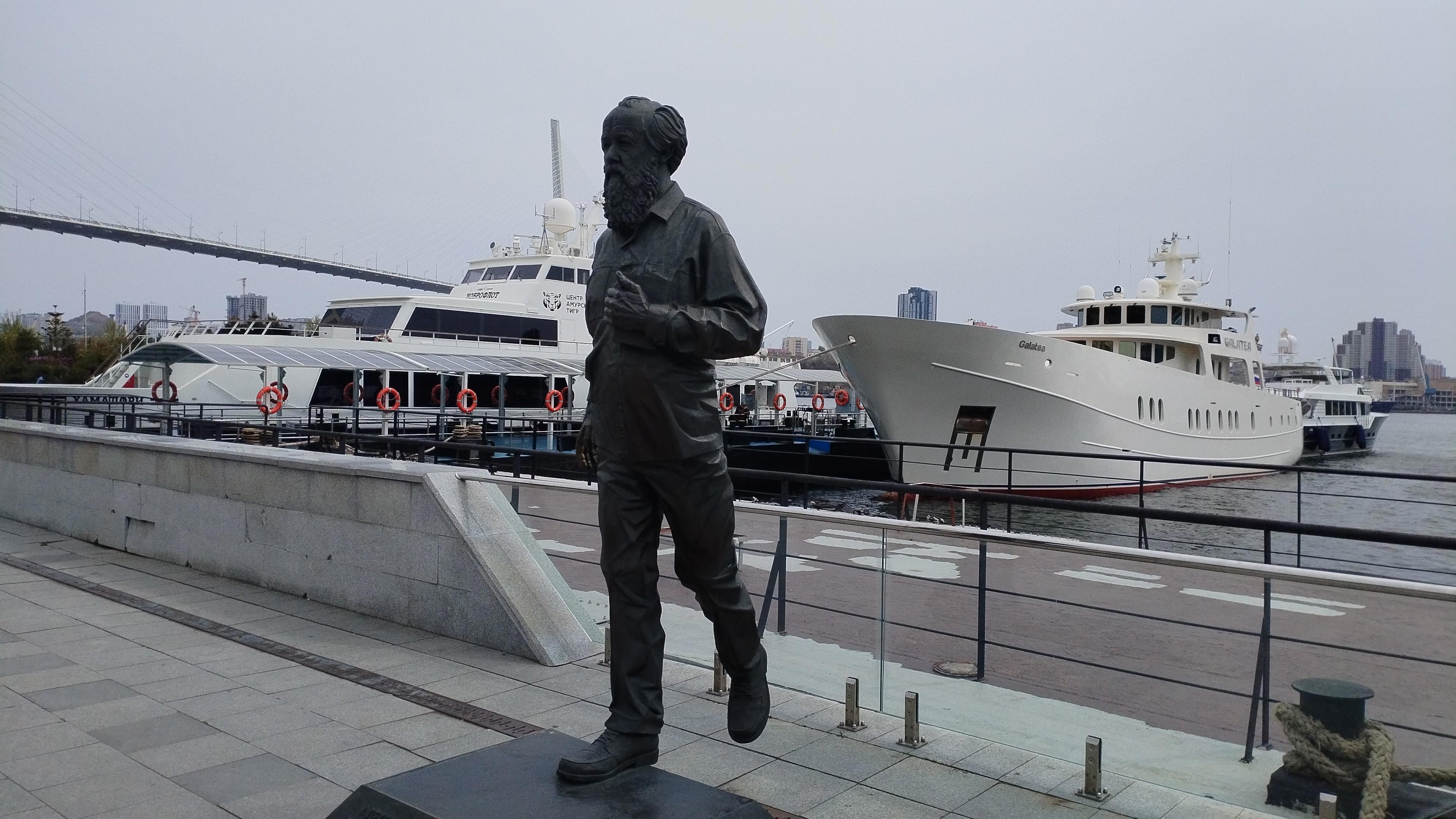 Ходили с семьей по Корабельной набережной и между пароходом "Красный вымпел" и подводной лодкой С-56 обнаружили памятник Солженицыну. Видно он возвращался в Россию из Америки через Владивосток.