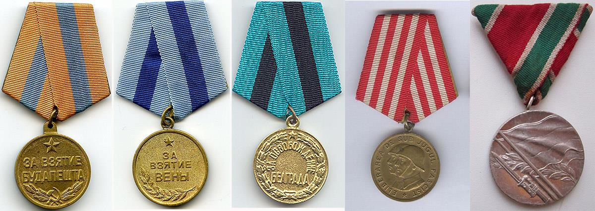 Ну а освобождение Софии и Бухареста обошлись без Советских памятных медалей, ибо болгары и румыны по быстрому, стали нашими союзниками, и создали награды сами. Румыны, медаль "За победу над фашизмом", а Болгары медаль "Отечественная война 1944-1945 гг." (что немного забавно, на болгарской медали немецкая винтовка Манлихера).