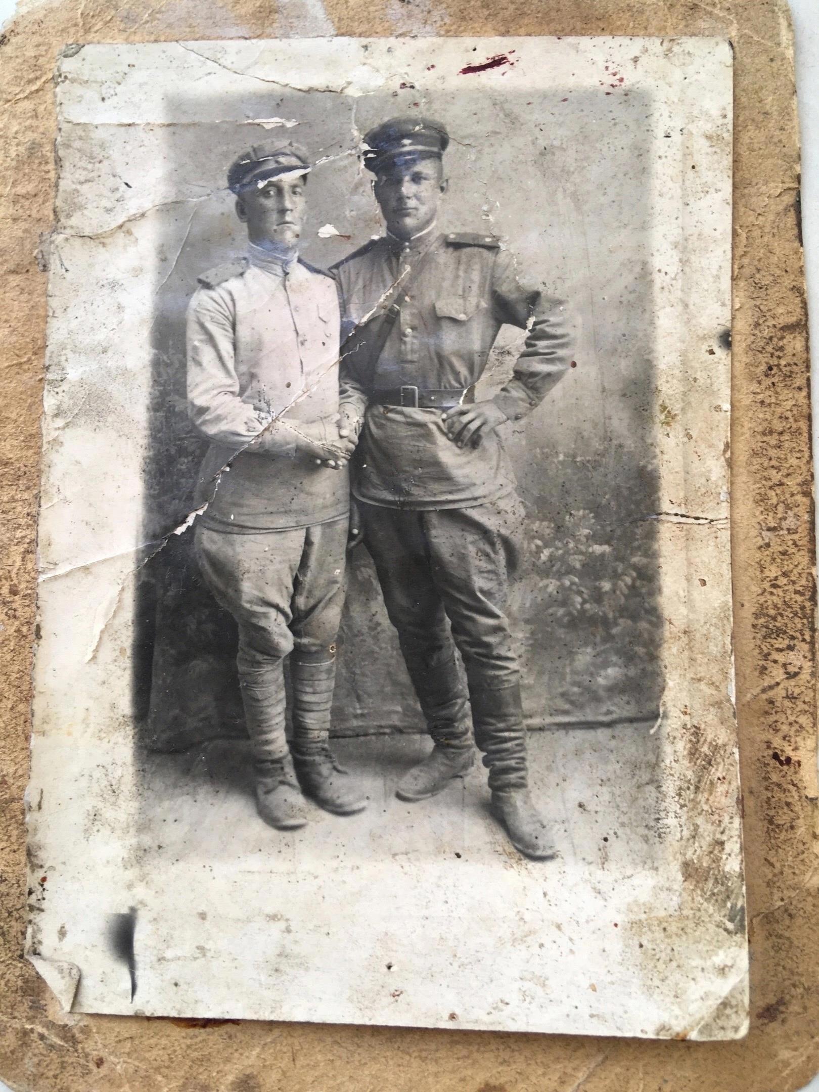 Этому фото 82 года. На нем мой прадед Аверьян Кондратьевич и его сын Александр Аверьянович. Они встретились на фронте в разгар войны. Сделали фото и разошлись. Как оказалось это была их последняя встреча. Прадед дошёл до Берлина и оттуда с трофеями вернулся домой. Александр же после войны остался в рядах НКВД. Как писала выше, погиб 26 августа 1945. Мне всегда было жаль, что он ушел таким молодым. Ему посвящен мой рассказ из серии Дозоры, потому что для меня он навечно боец невидимого фронта добра и зла. https://author.today/reader/24455/181175