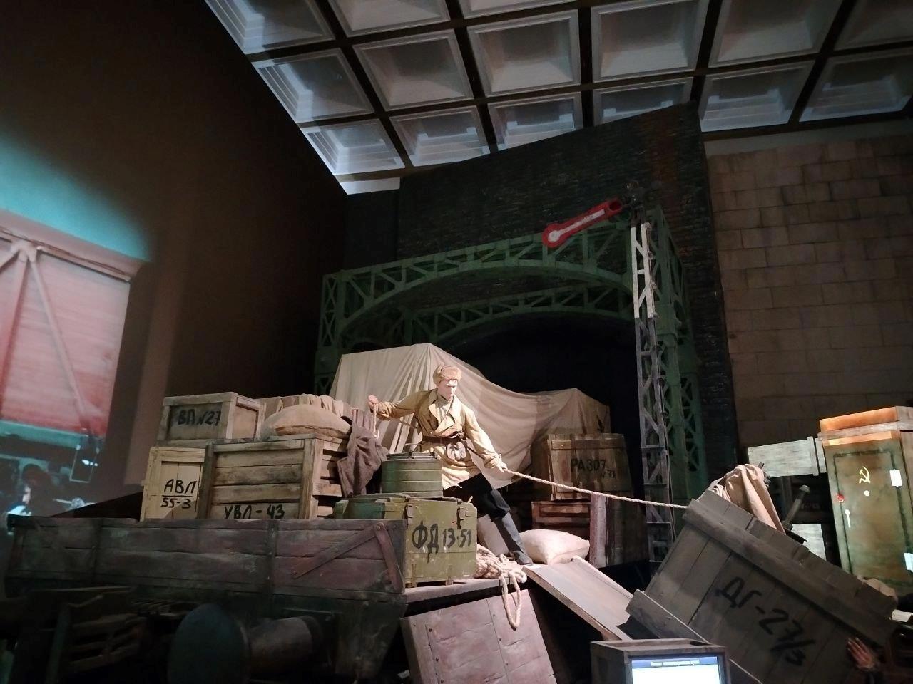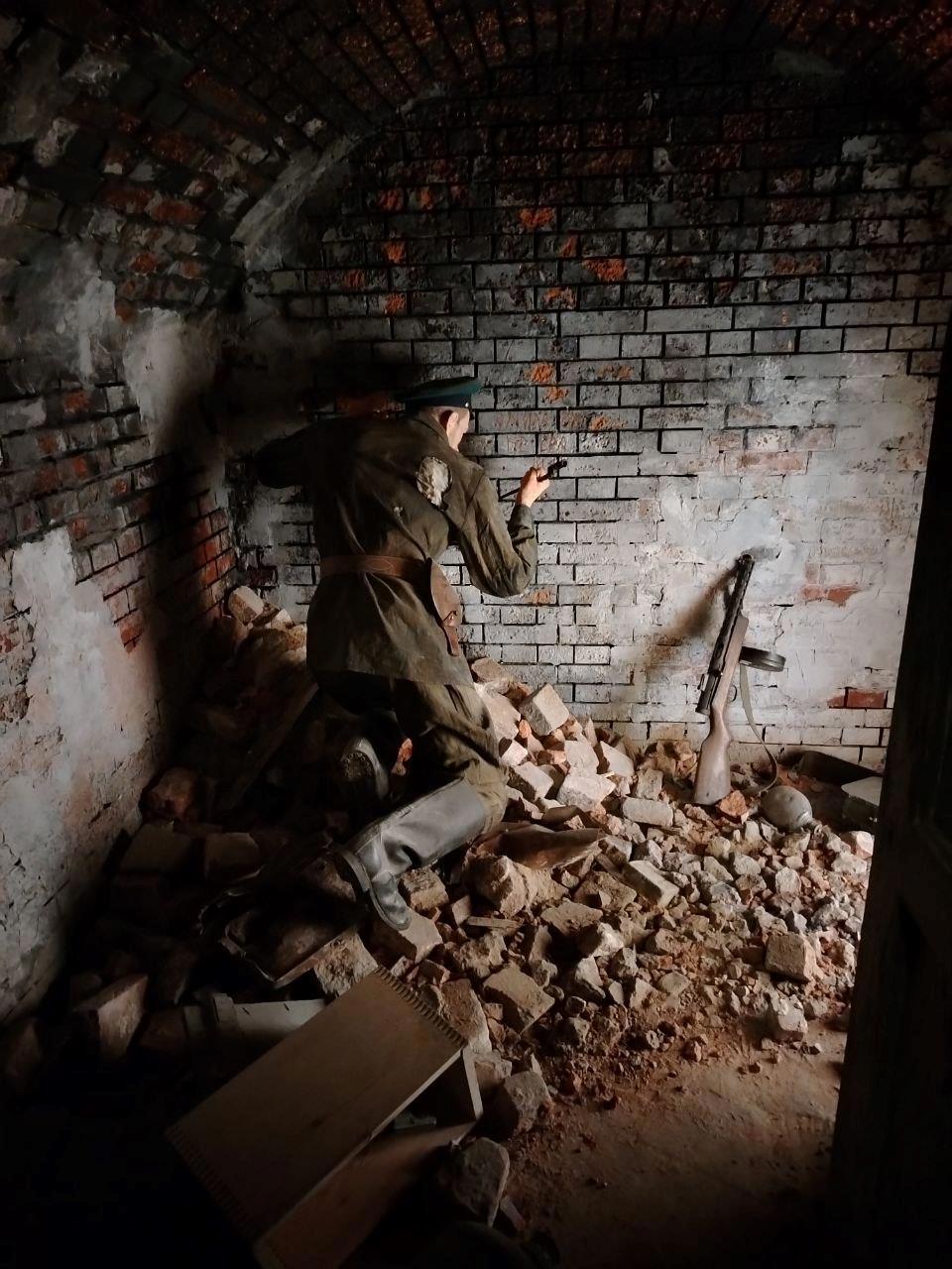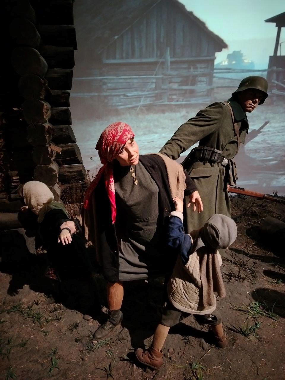 Потом вы попадаете в оккупированную немцами деревню и город. На фоне на здоровеном экране крутится ролик - захват деревни. Экскурсовод берет аусвайс и отдает его актеру - полицаю, и только так вы можете пройти дальше.
