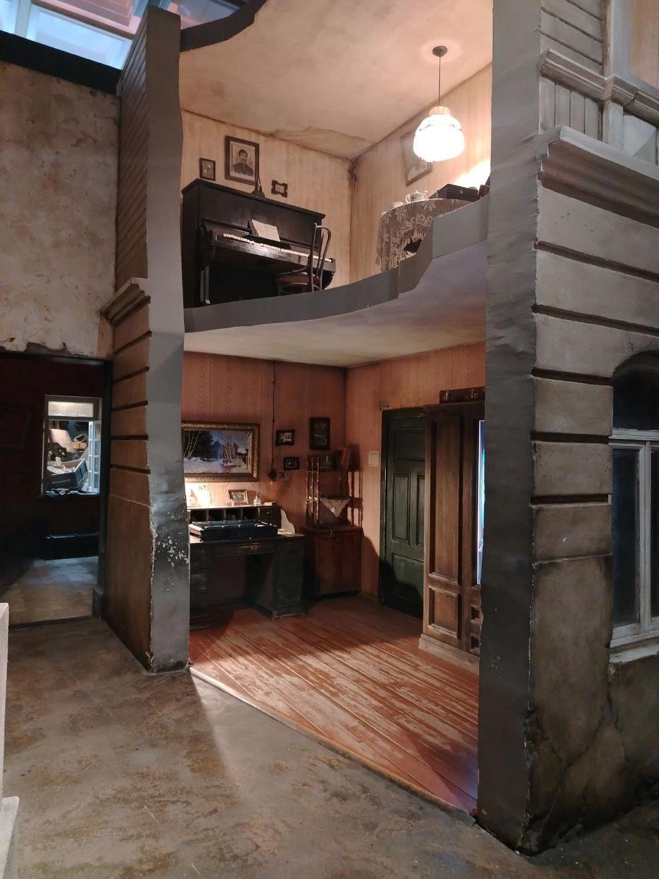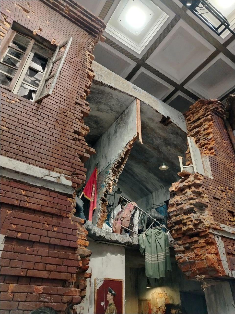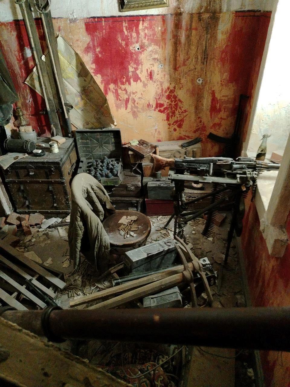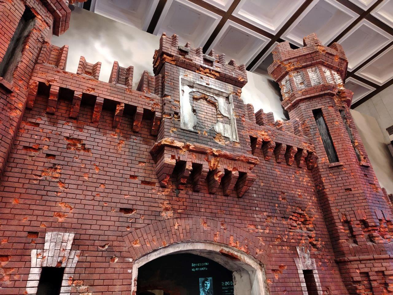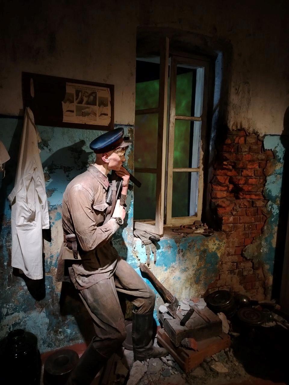 И начинается экспозиция с прохода в ворота Брестской крепости, затем вы попадаете с общежития и казармы крепости, внутренний двор, где идут бои, госпиталь. Вы идете прямо между нереально качественными декорациями, где все модели масштабом 1 к 1. Каждое фото ниже можно тыкнуть и посмотреть ближе.