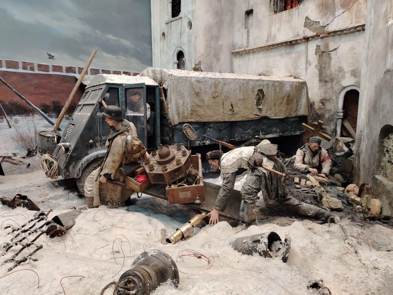 Сталинградская битва. Немцы явно замерзают, но мне их ни капли не жалко. Грузовик, упавшие памятники, орудия, все полноразмерное.