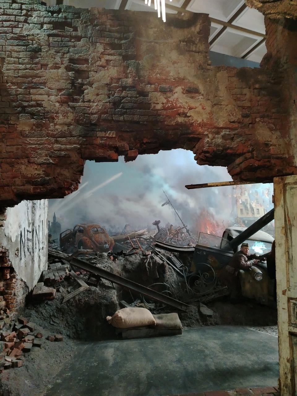 Музей Победы сейчас это шикарная экспозиция, которая полностью построена на интерактиве - Вы переходите из зала в зал, где все вокруг - полноразмерные модели. Вы ВНУТРИ событий. Между экскурсионными группами ходят живые статисты, тематически одетые. Врачи, мирные жители, бойцы, полицаи.