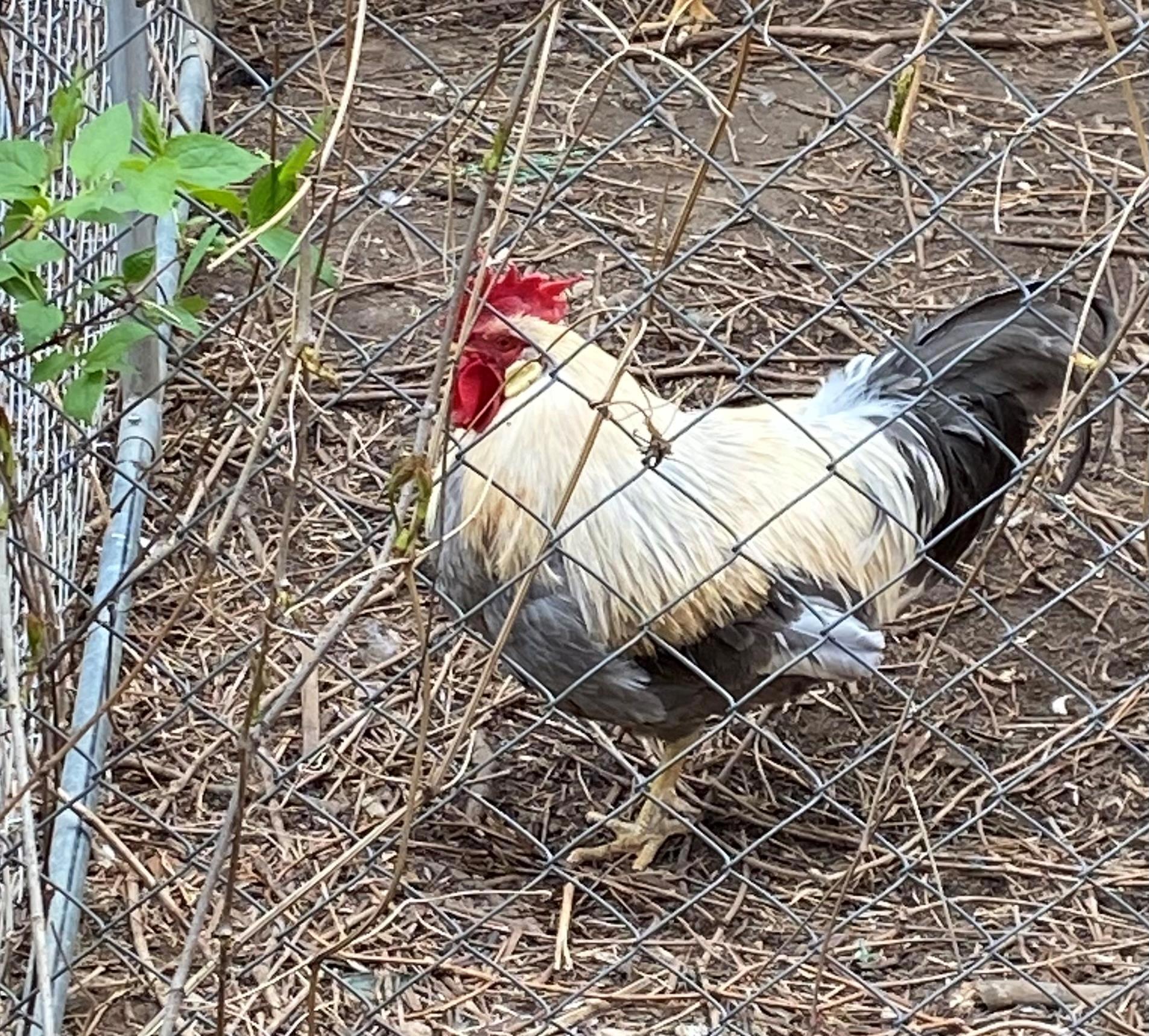 Теперь петух стоит, греет ногу.