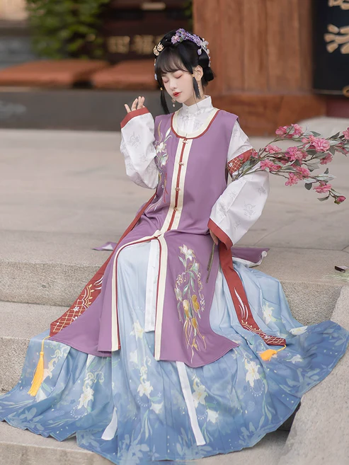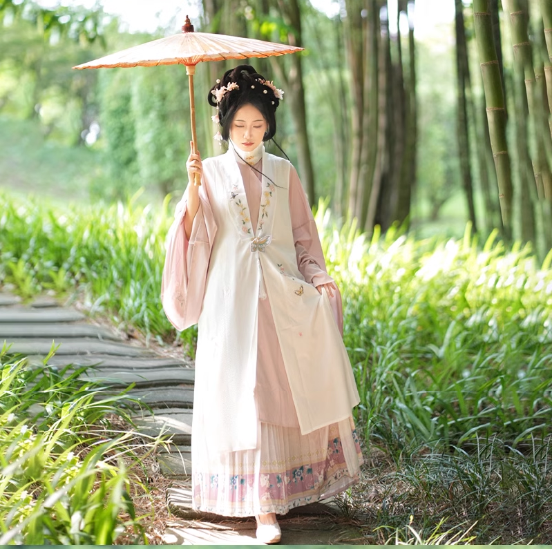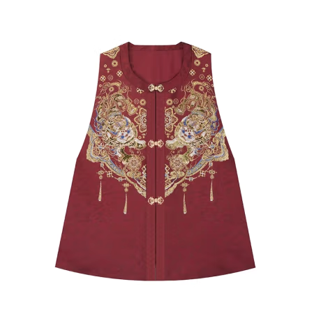 Очаровательный удлиненный жилет "бицзя" 比甲с круглым вырезом "юаньлин" 圆领 . Работа современных модельеров.