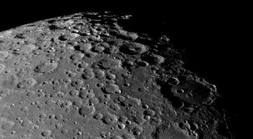Однако наблюдать Луну лучше всего не в полнолуние, а когда она хоть немного ущербна. Ибо неровности рельефа, косо освещенные солнцем, отбрасывают тогда контрастные тени. Забавно видеть, как некоторые горные пики и валы кратеров вблизи линии терминатора как бы "висят в воздухе". Вот для примера фото южного полюса Луны: