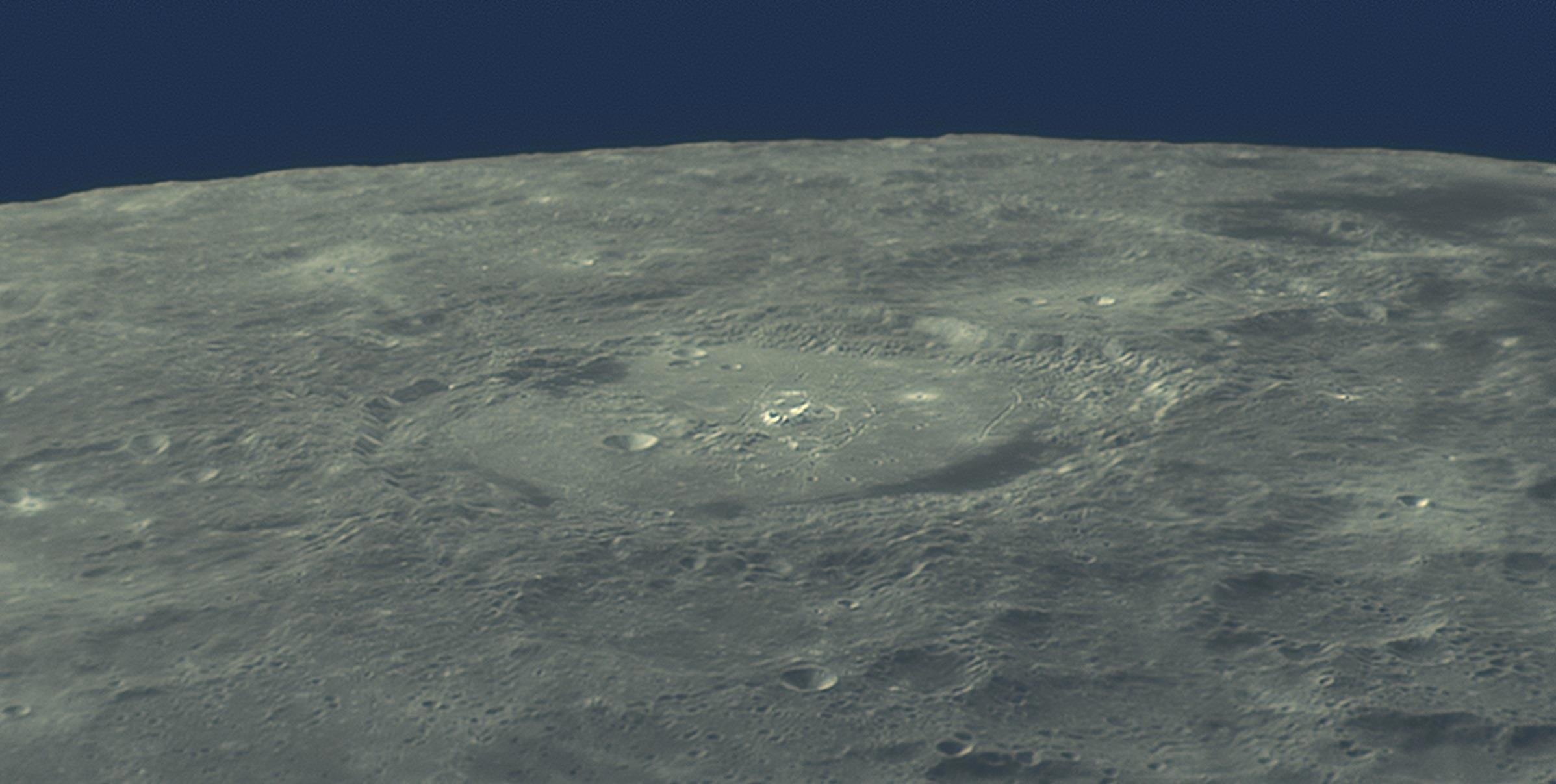 Внизу -- кратер Тихо, самый броский благодаря системе отходящих от него лучей и мелких вторичных кратеров от падения выброшенных при ударе обломков. Вспоминаем "Незнайку на Луне": "Конечно, лунные кратеры не вулканы, но они также и не блины. Всем известно, что это следы от ударов крупных метеоритов". Истинная правда.