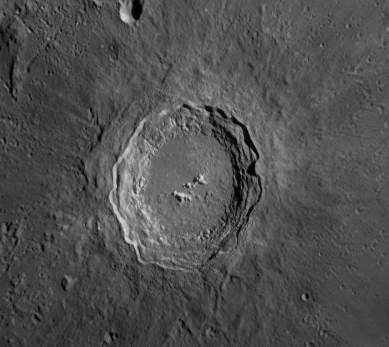 Нередко кратеры имеют центральную горку, ну а тут их несколько. Почему-то.