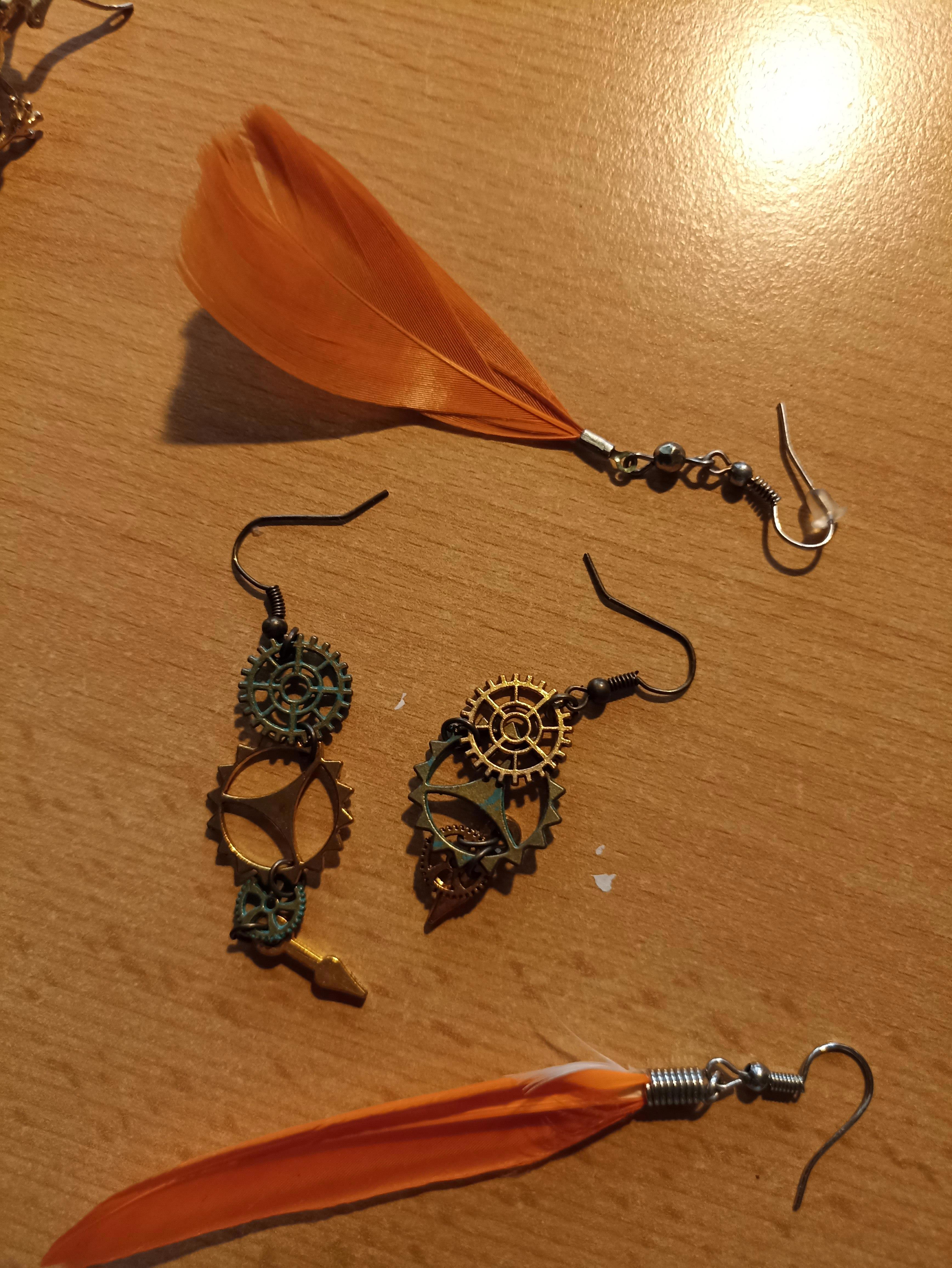 Шестерёнки и перья))) С перьями у меня мало что есть, а с шестерёнками ещё подвеска и браслет. Короче, стимпанк жжёт