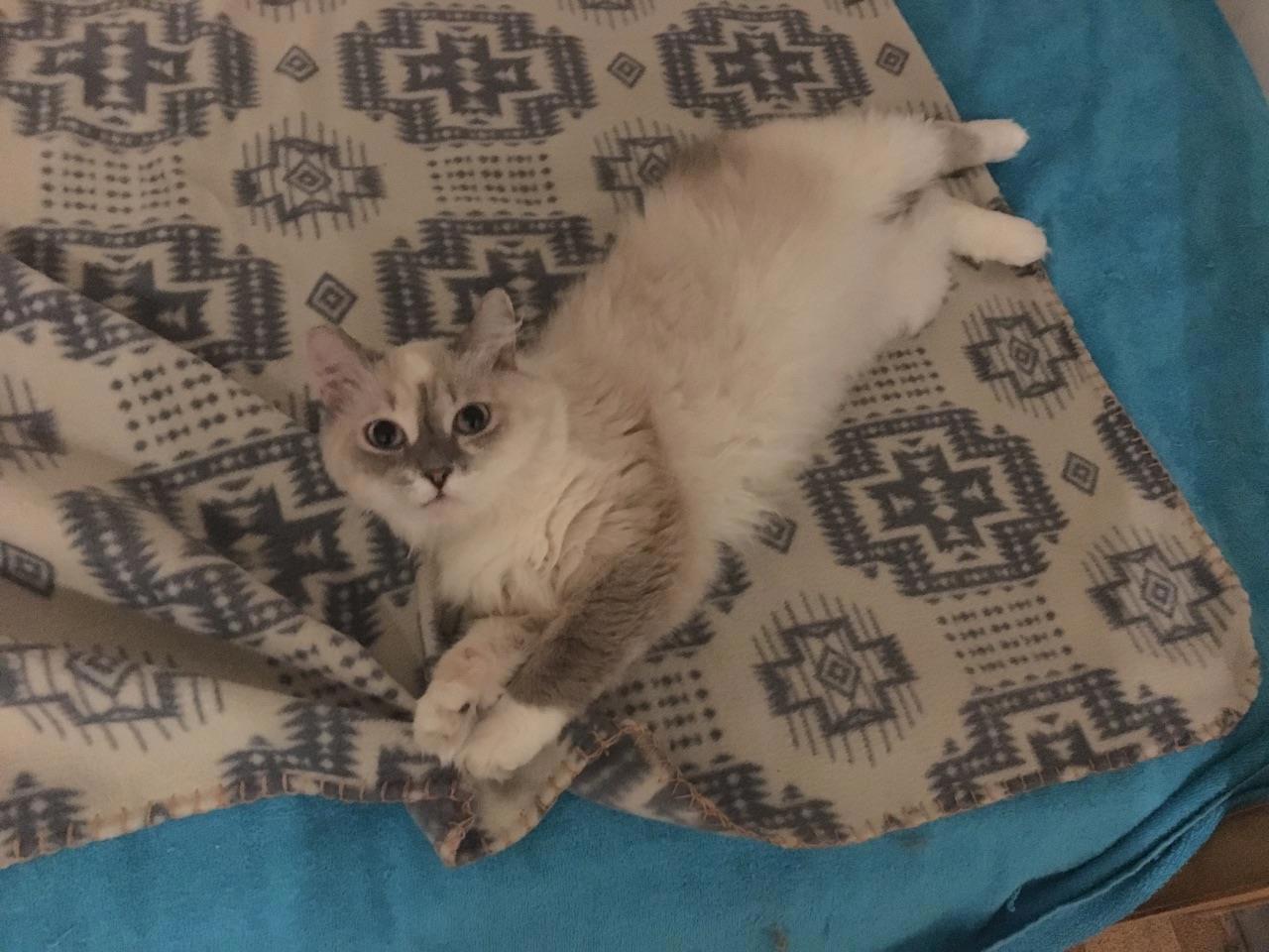 Кошка идеальная. В приют попала со сломанных хвостом и обмороженными ушами. С тех пор очень старается быть хорошей. Кошка, которая не доставляет неприятностей. Так не бывает, но так есть.