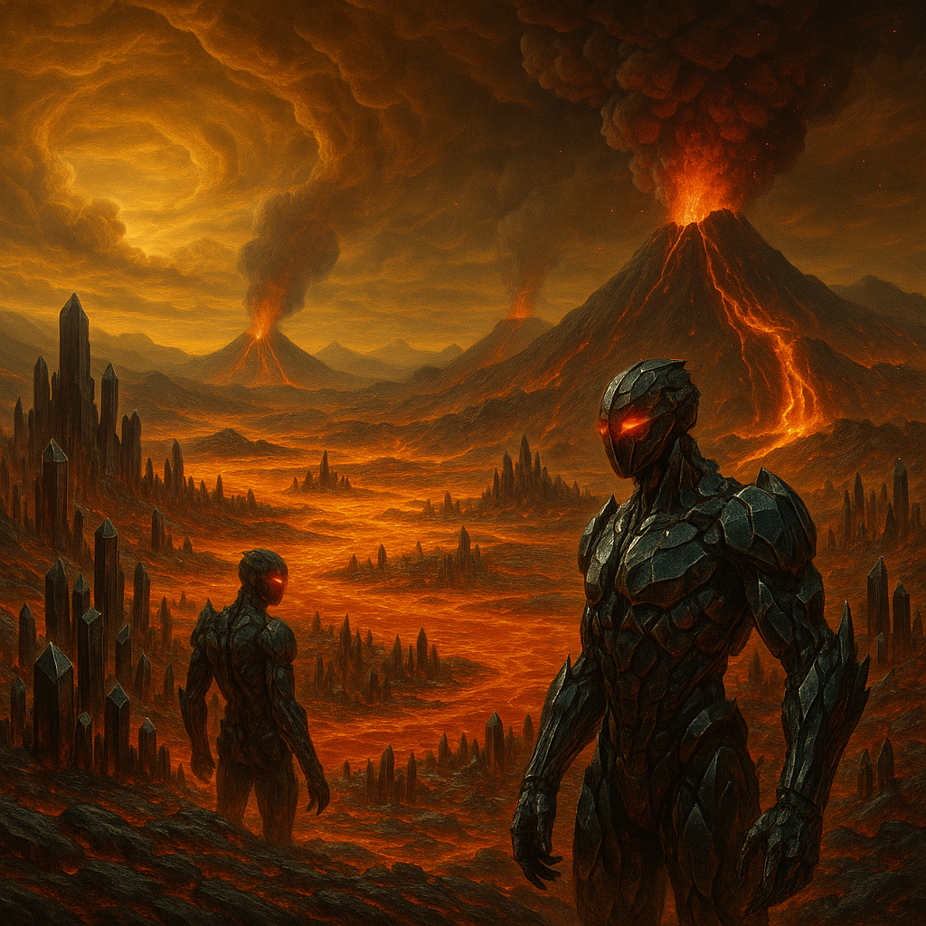 Представим разумных кремниевых существ — силицидов, эволюционировавших в раскалённом мире с серной атмосферой. Их цивилизация развивается в условиях, кардинально отличных от земных, что накладывает отпечаток на их биологию, технологии и философию.