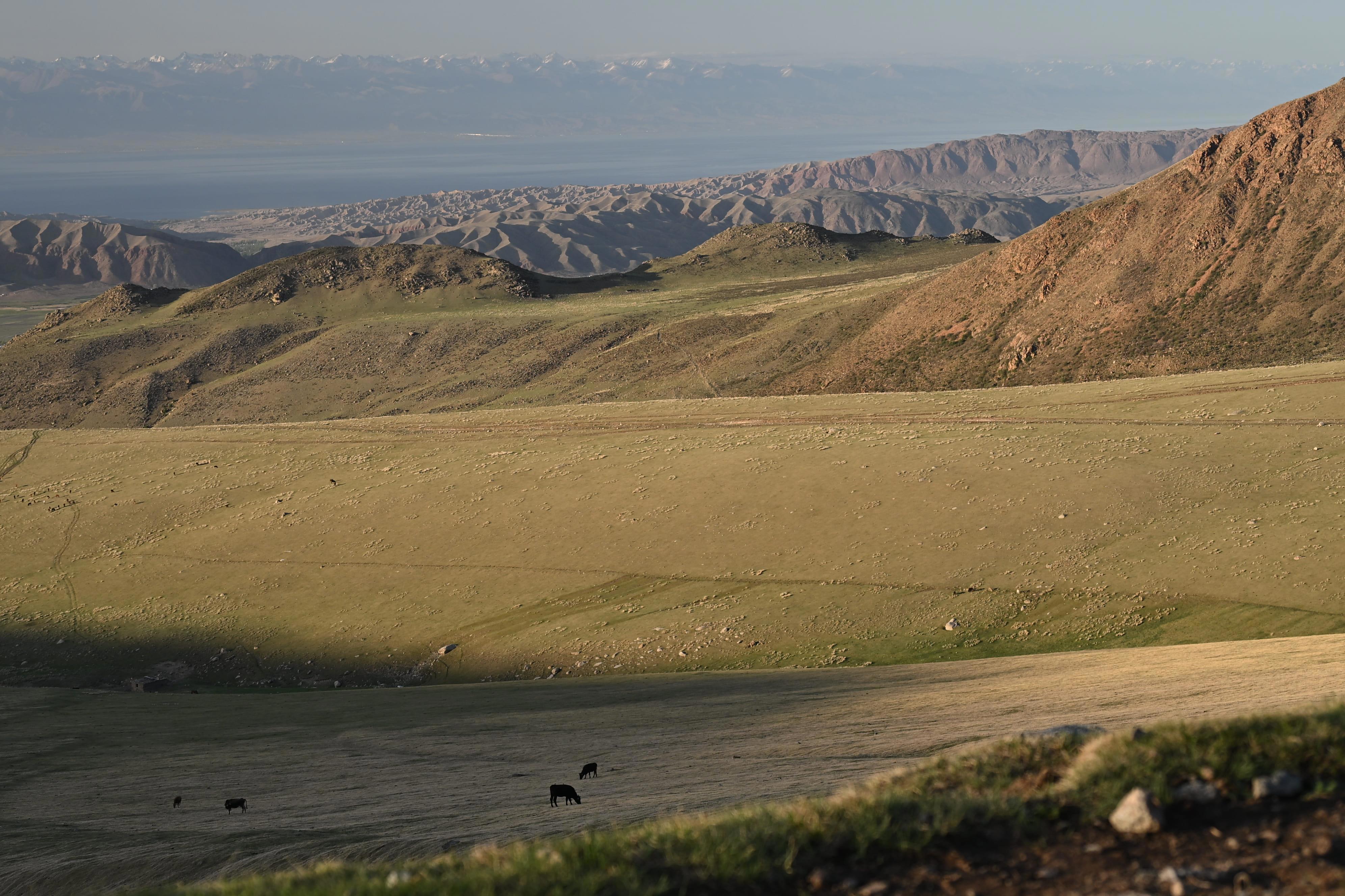 Что могу сказать про район? Солнечный и теплый Кыргызстан прекрасен. Мы ходили на грани между зеленью холмов и снежными "скальными стенами", поэтому всюду, насколько хватало взгляда, открывались бескрайние просторы гор и полей. Почти всю дорогу мы видели Иссык-Куль и далекие-далекие горы Казахстана.