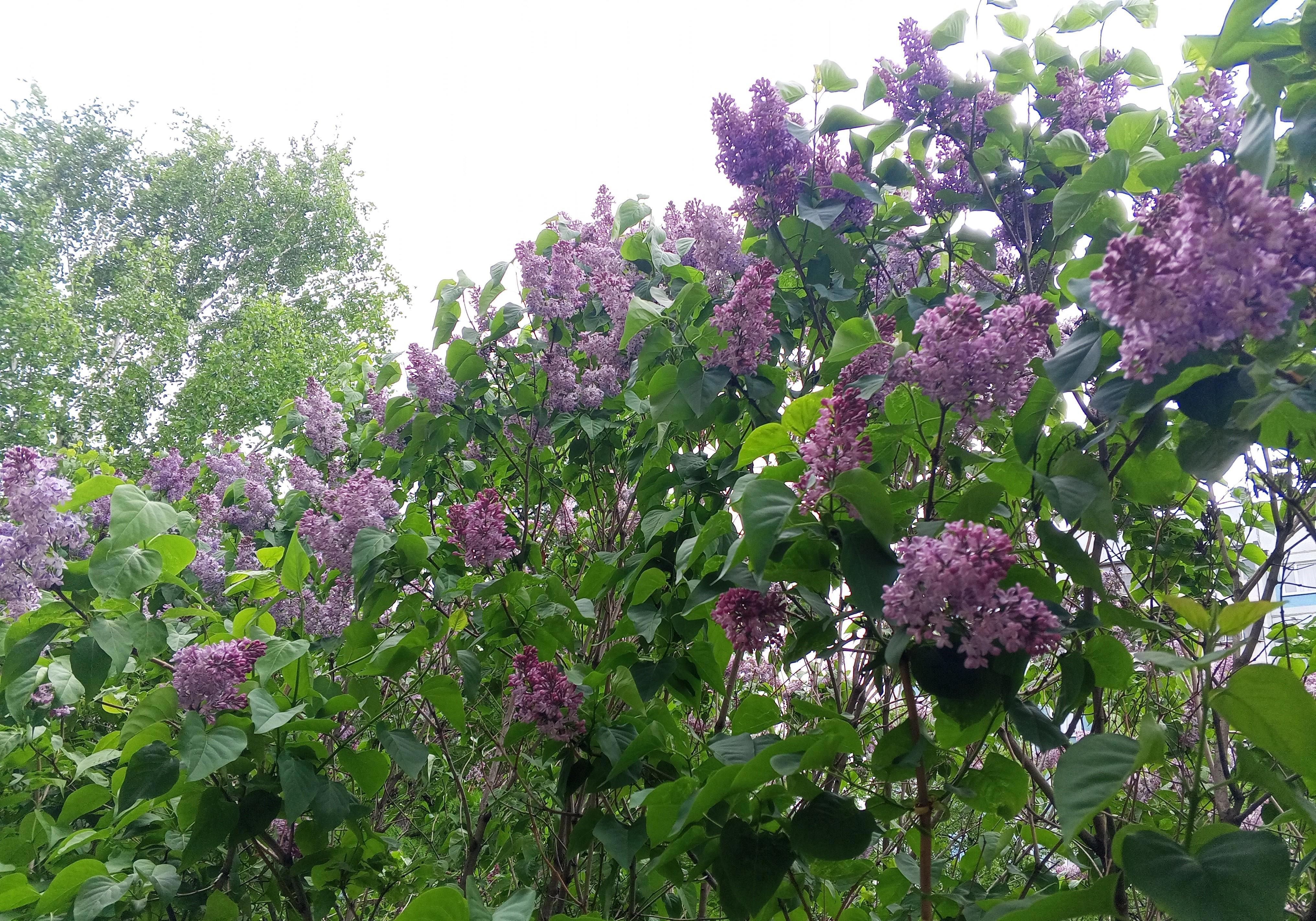 Сирень в этом году богатейшая, зря я, кстати, бухтела как-то, что повырубали кустарники несколько лет назад. Спиленная до пеньков, она разрослась неимоверно, стеной, попышнела и раскудрявилась, так что такая процедура ей на пользу))