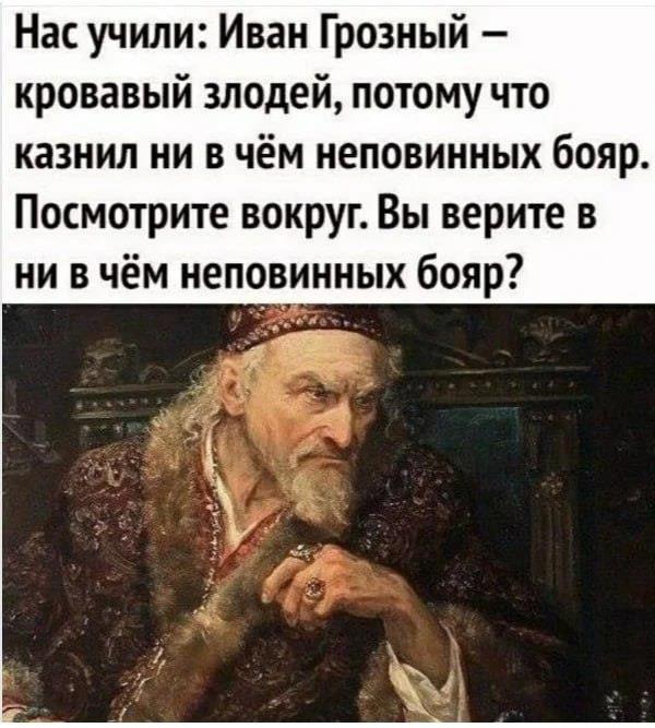 И получается, что таки бояр царь должен курощать и казнить, иначе бояры до такого доведут, что всем хана... особенно когда бояре только о себе думают. А они как правило только этим и заняты.