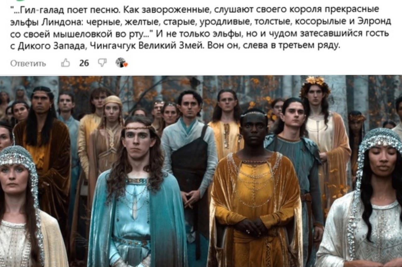 Не задавайте вопросов, ответов вы не получите. К слову, массовка из эльфов, видимо, ждала, что их позовут сниматься, поэтому у многих есть парики. Это их личные, явно, потому что основным актерам они не достались. Так же не задавайте вопросов за лор и даты, он у них тут полностью свой.