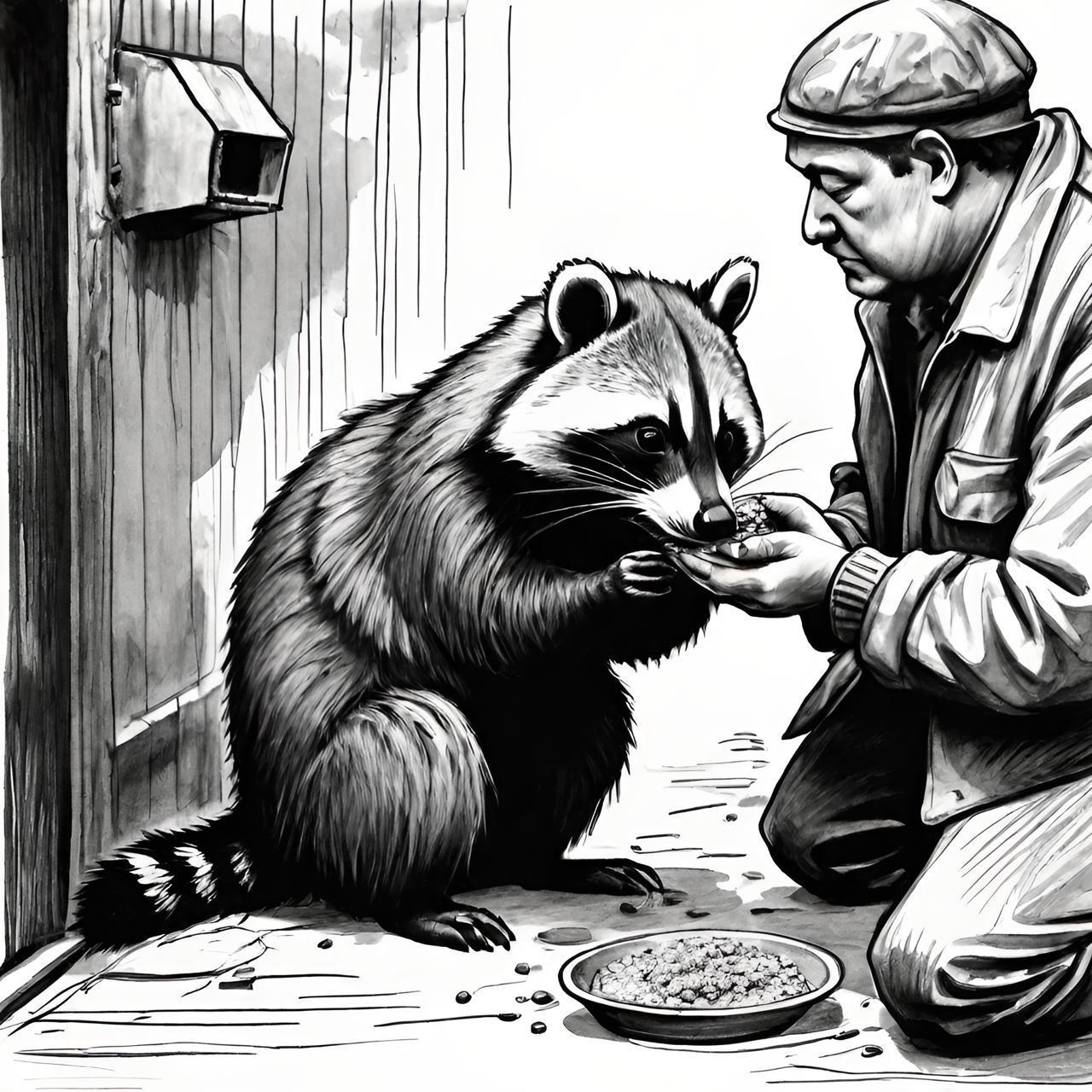 Московский зоопарк. Жирнющий енот благодаря новообретённой собственной гравитации прилип к дереву рядом с табличкой "Животных не кормить". Семья милых и добрых ребят пухляшей, вместе со спиногрызом подходит к вольеру и кидает печеньку через ограду: "Смотри, сынок, как он ест… Явно голодный!".