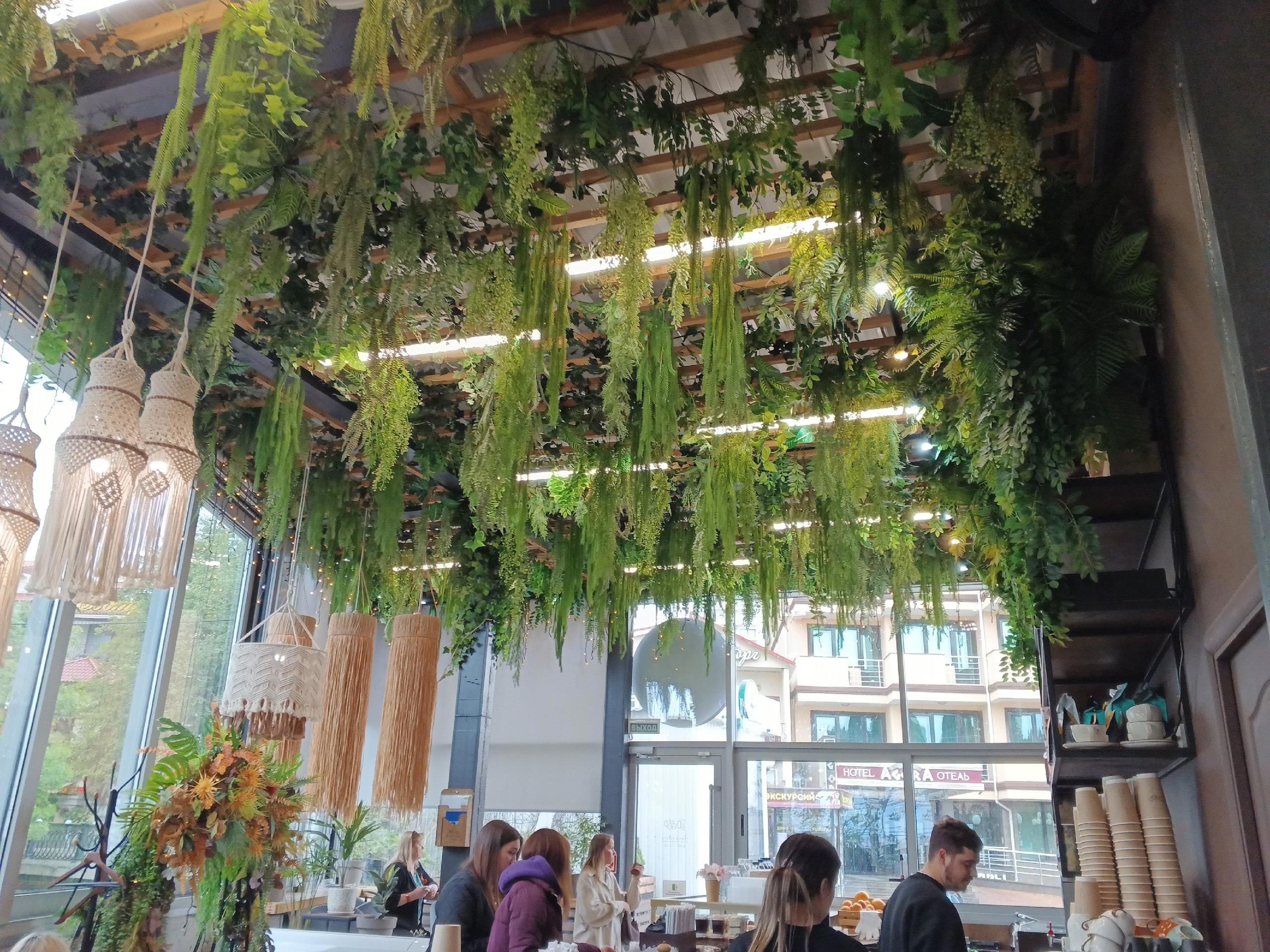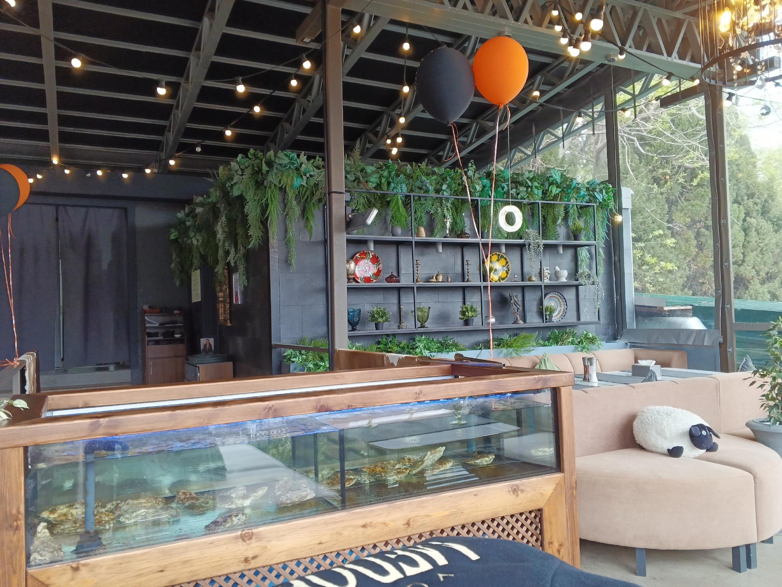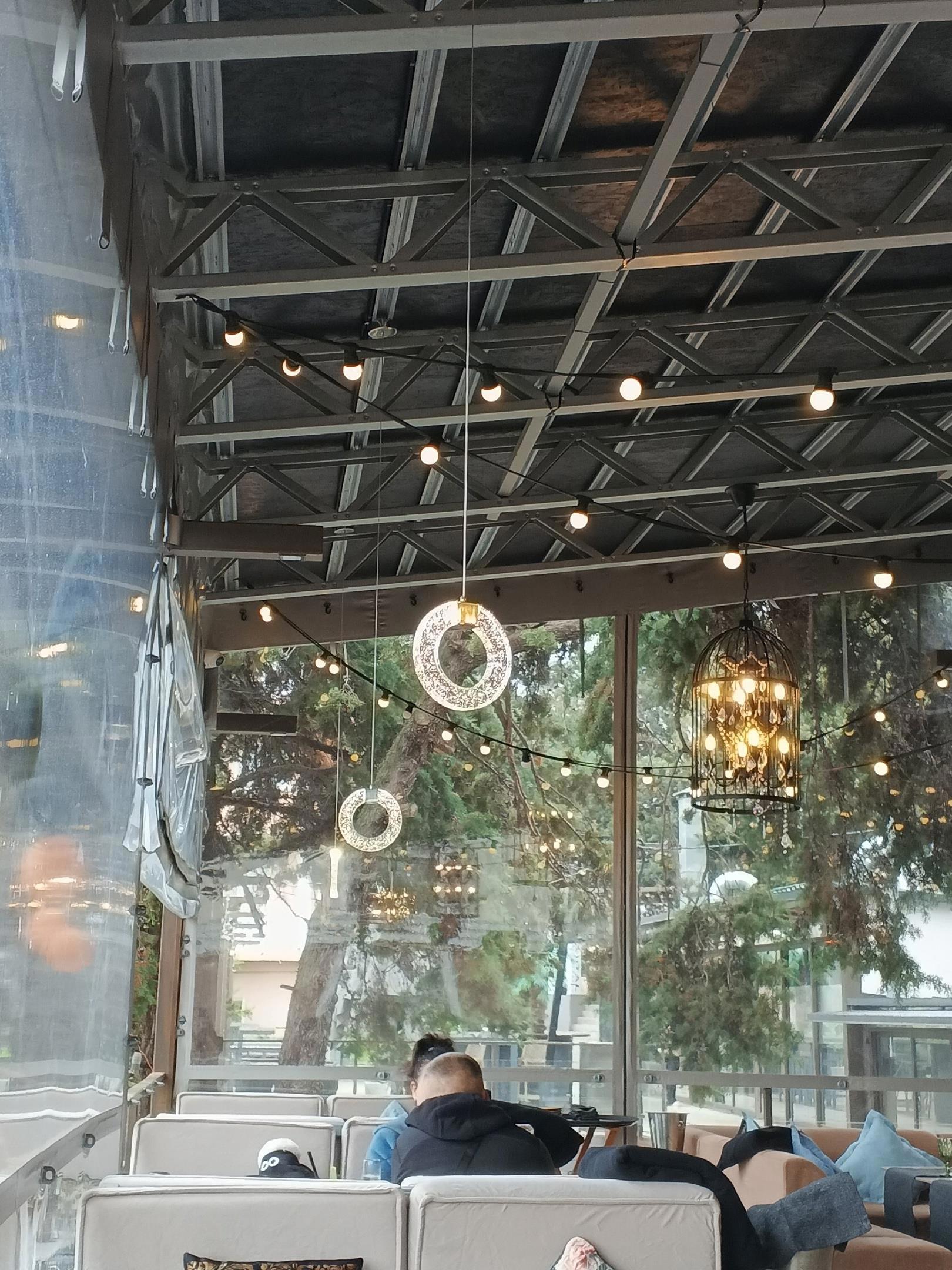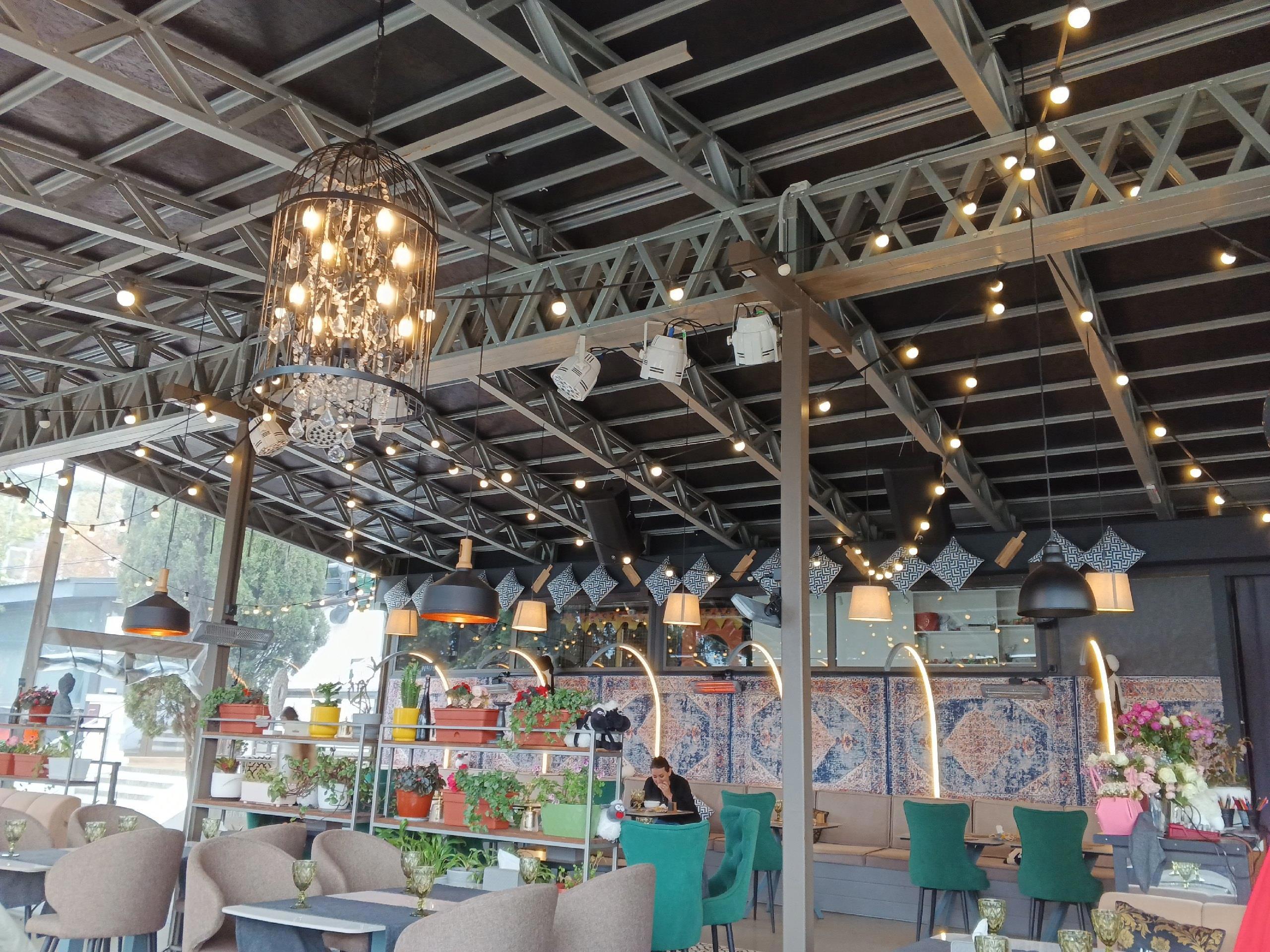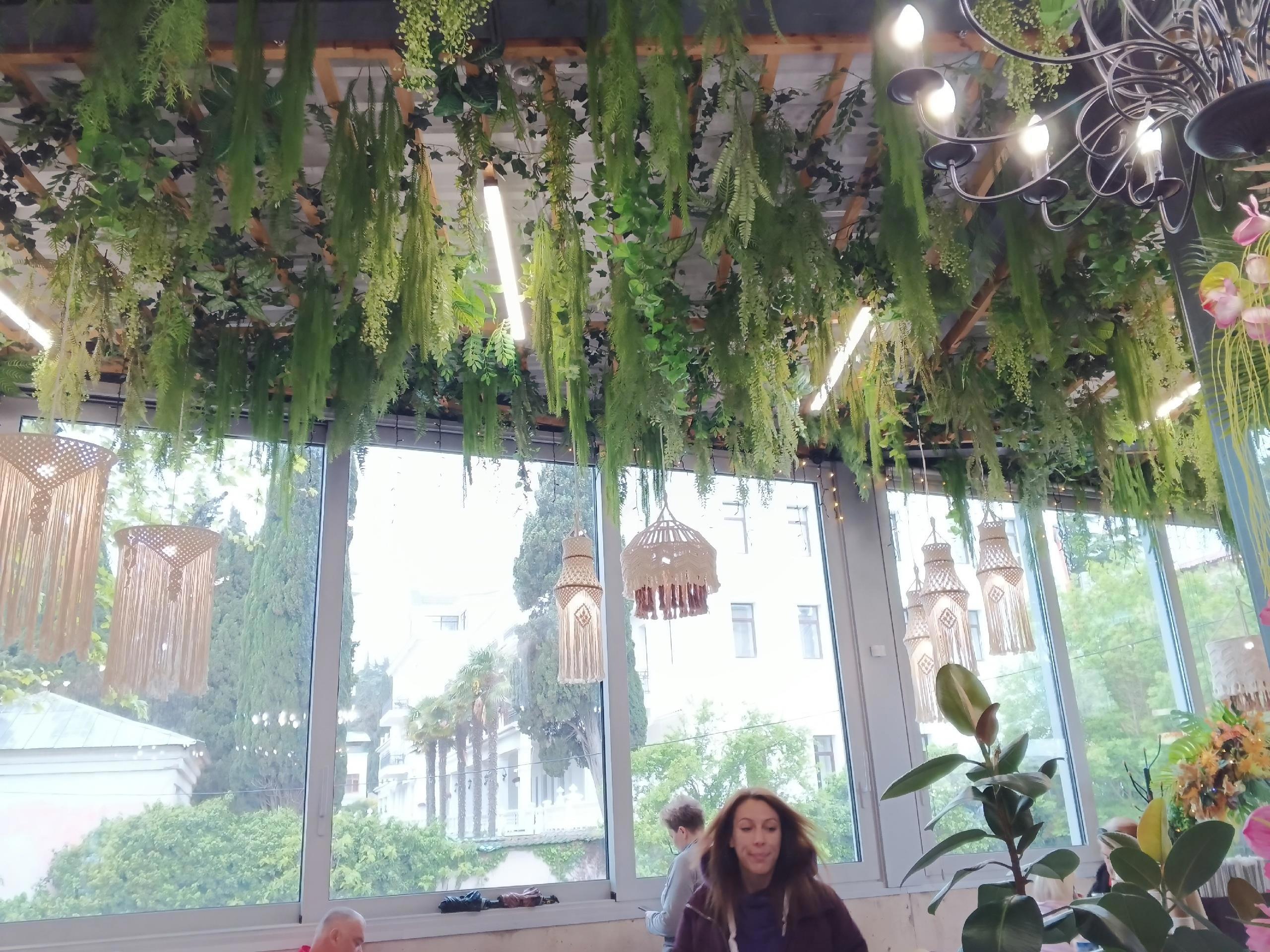 К нашему огорчению, кафе, где мы обычно едим суши и пьём кофе работало, но, оно открытое. Сидеть на влажных диванах, под дождём... Удовольствие ниже среднего. Мы зашли в кафе, которое расположено ровно напротив него. Называется "Барашка".
