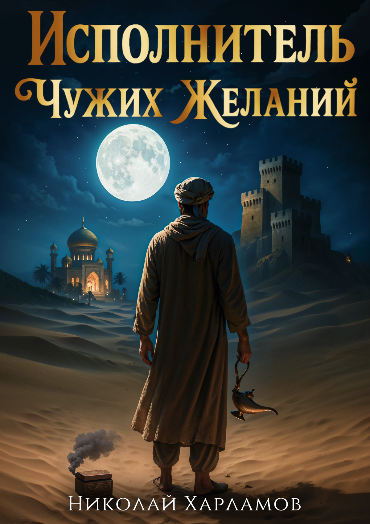 Звучит, как попаданец в мир волшебной восточной сказки. Я обожаю пустынную тематику, поэтому обложку делал с чууть большим удовольствием, чем обычно ^_^ Почитать книгу можно тут.