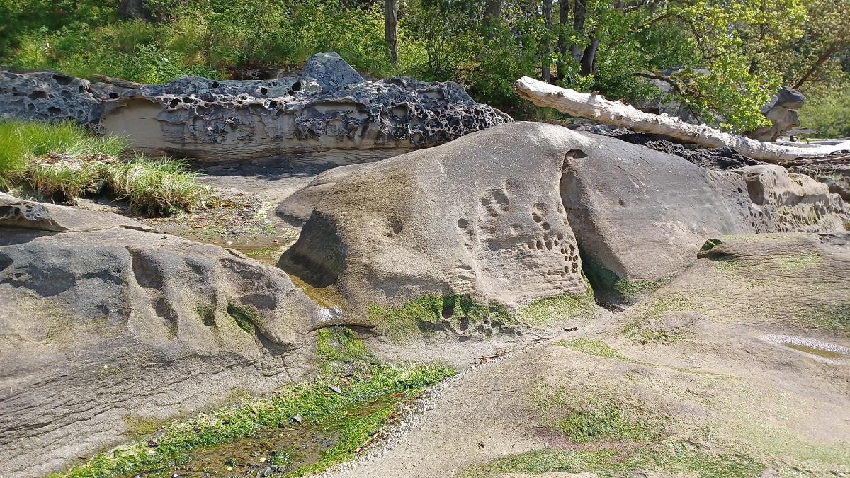 Jack Point and Biggs Park находится в Нанаймо. Во время отлива здесь можно наблюдать причудливые берега из песчаника. Кто здесь резчик по камню? Море, ветер, частые приливы-отливы, соляные кристаллы. Совместное творчество :)