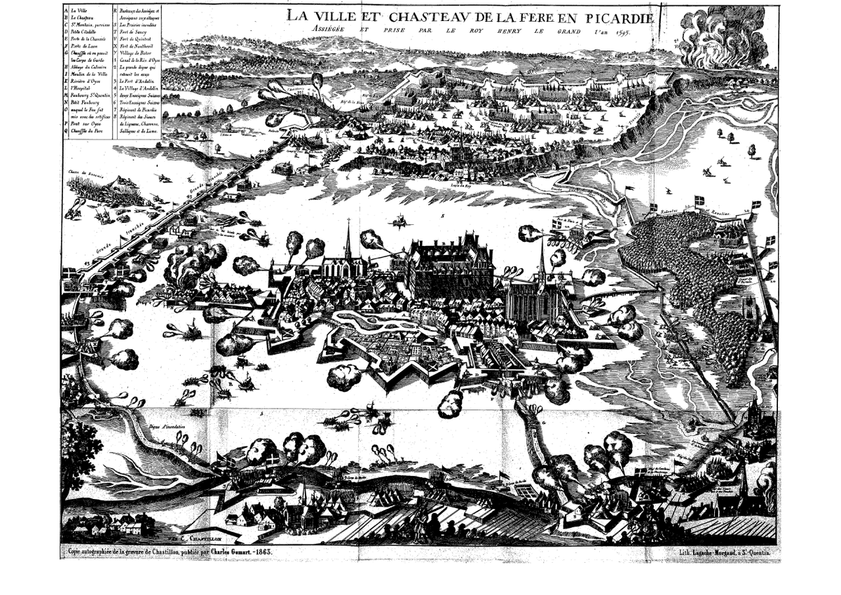 Ла-Фер превратился в неприступную крепость. Но в 1595 году король Генрих IV начал осаду Ла-Фера, города, который по закону принадлежал ему как отцовское наследство. Осада была долгой и можно посмотреть ее изображение.