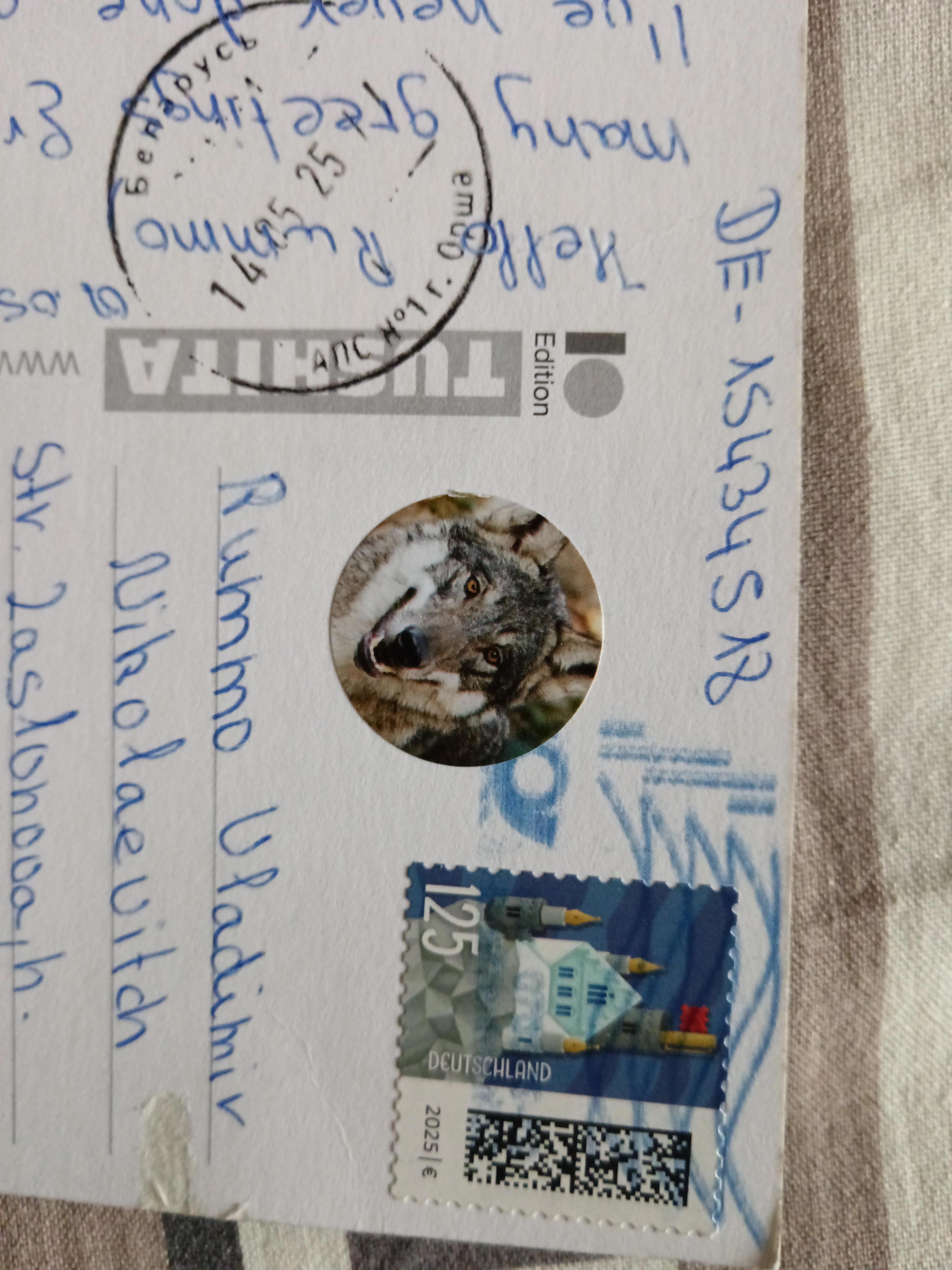 Пришла оркрытка из Германии. Посткросинг. Ещё не перевёл и не зарегистрировал её. Успиваю её вписать в пути водитель по Орше названный Мультиквест3в1.