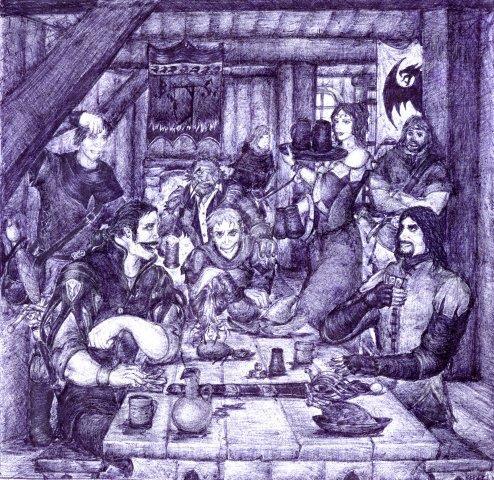 Своё - Масло, Костоправ,Гоблин, Одноглазый, Молчун (на заднем фоне), служанка (а мож замаскированная Госпожа), Ильмо, Ворон