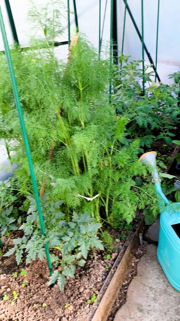 А это из жизни растений в моей теплице. Тот укроп, что колосился ранее, доситиг вот таких размеров