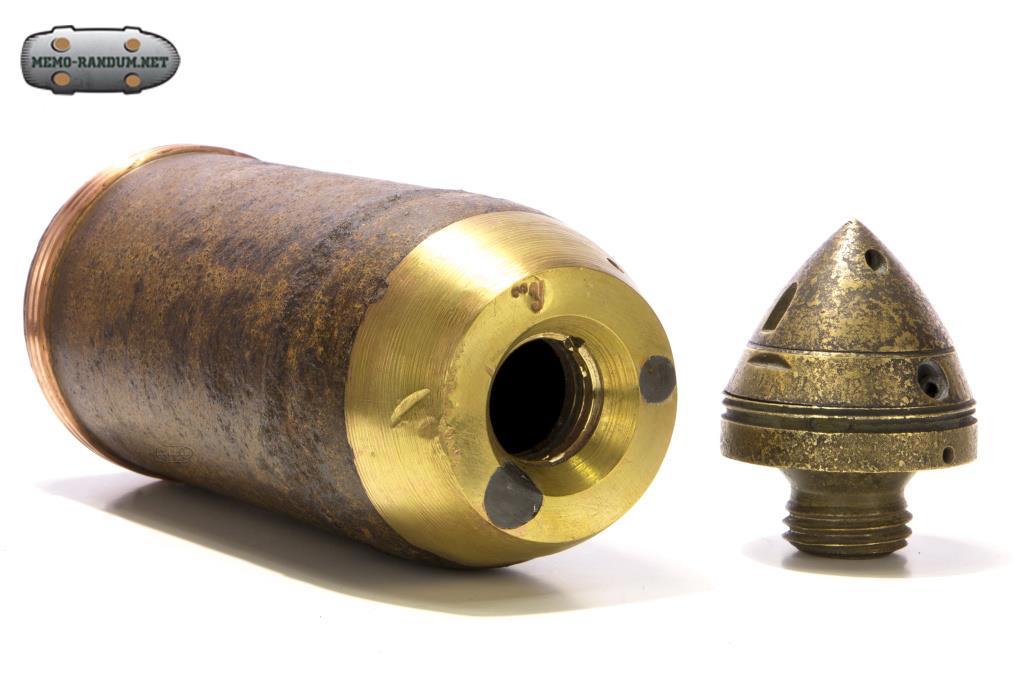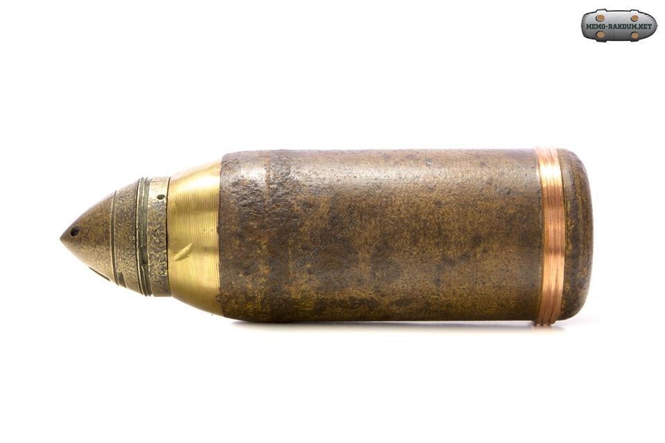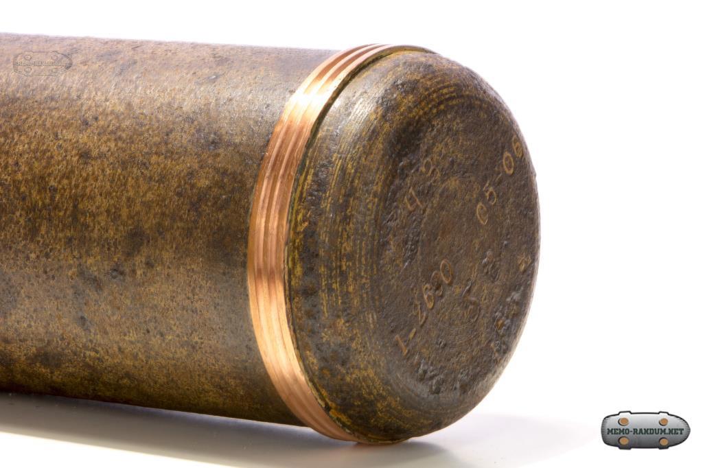 Я в артиллерийских боеприпасах - не очень, но тут даже мне сразу бросились в глаза непривычные пропорции, необычно близкое к донцу расположение пояска, и две продольные канавки на нём, что так же не очень характерно для снарядов того времени. Лично мне, по крайней мере, ничего подобного среди отечественного производителя ещё не попадалось.