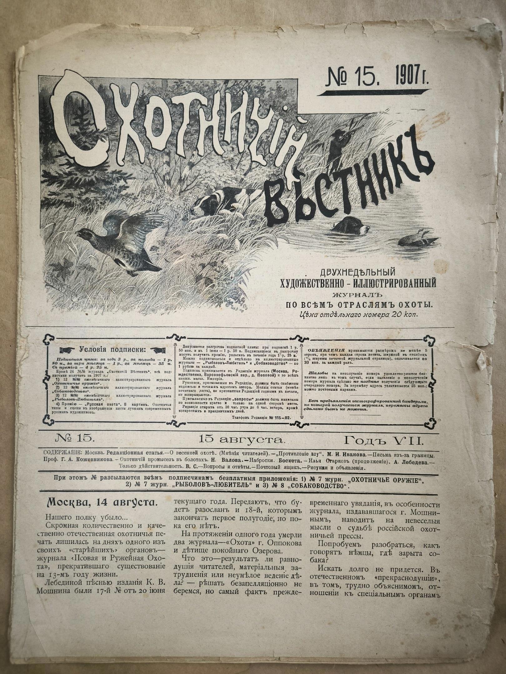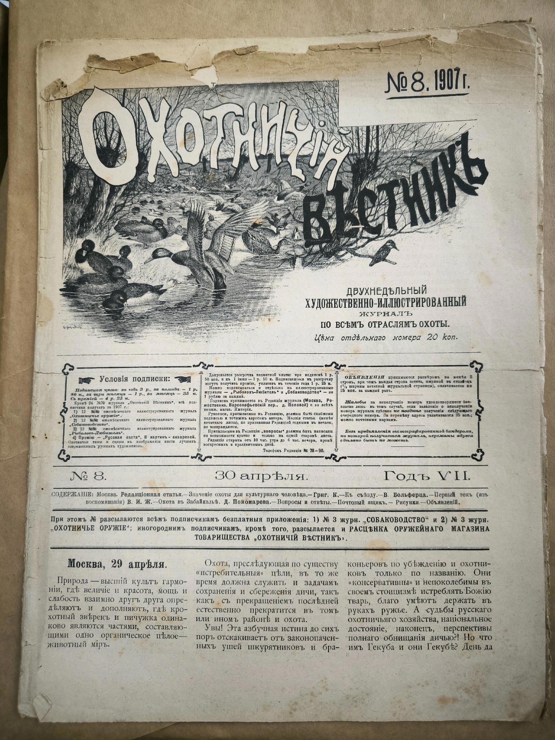 Сегодня я к вам с мужскими журналами "Охотник" и Охотничий вестник" за 1904 и 1907 гг.