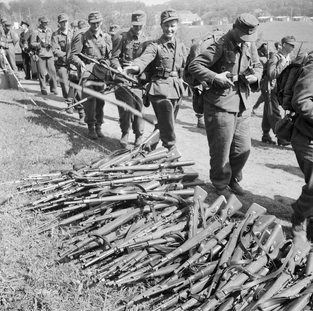 Автор: Николай Берг1945 год — немцы пытаются сдать оружие союзникам. Те его не принимают — нет места для складирования. Немцы таскать лишнюю тяжесть не желают, а союзники грозят карами за бесконтрольно выброшенное оружие. Так и ругаются.