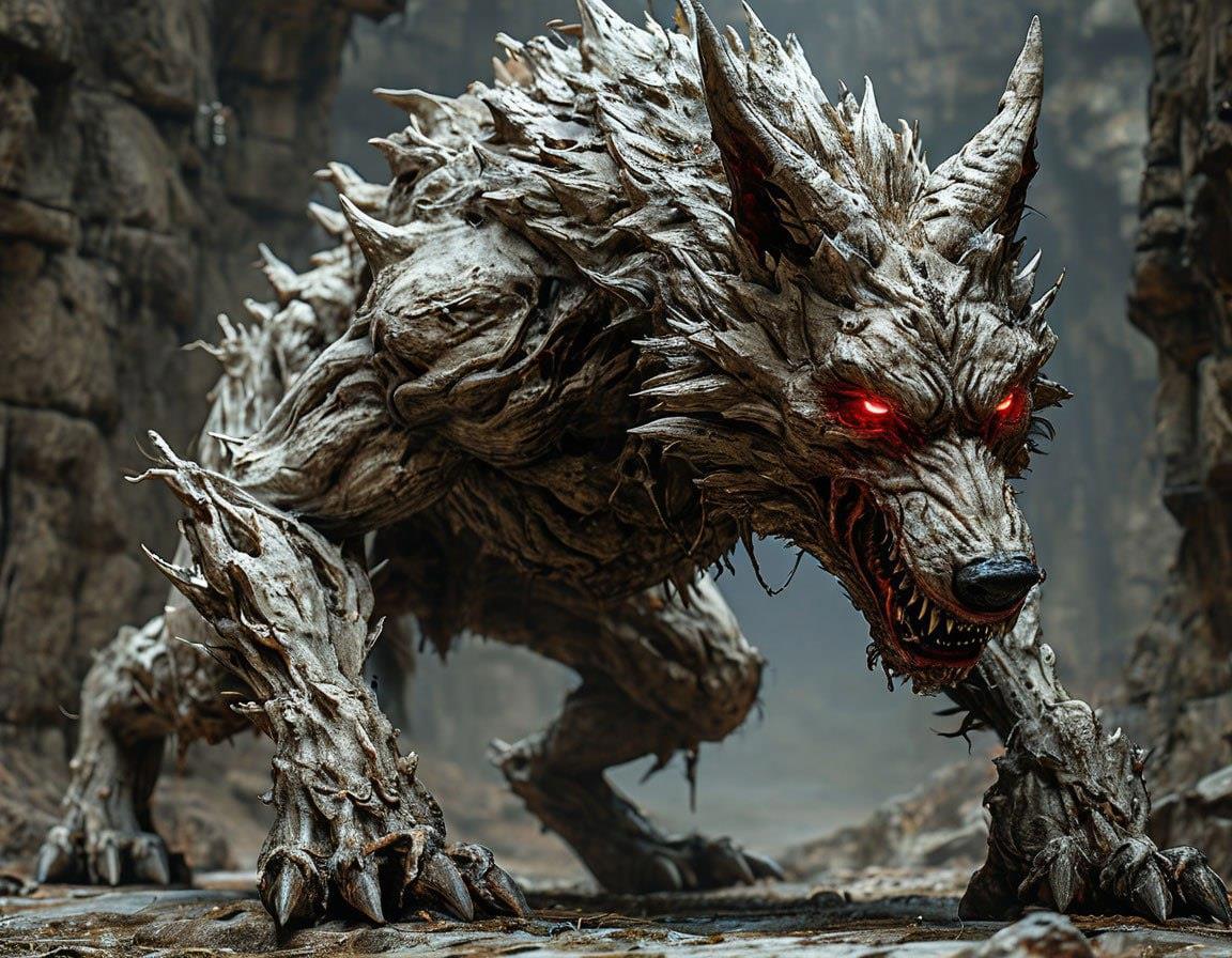 «И в этот самый момент… Словно что-то кольнуло. Вот бывает так, что спиной взгляд чувствуешь? Я почувствовал. Осторожно повернул голову и увидел его. Нет, сначала я увидел его глаза, красные, словно огненные, а только потом его самого. Это был…, Пожалуй, что волк. Или большая собака. Очень большая! Громадная! Размером с теленка. Но ладно бы просто большой волк. Но он весь был в наростах и костяных шипах. И морда его была как страшная костяная маска».