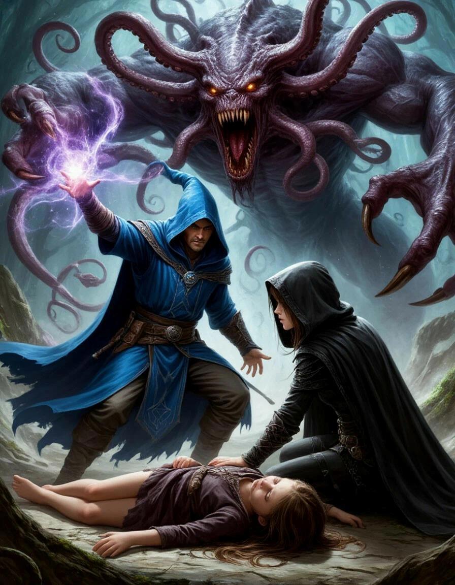 А вот пересечение историй. Где Эланир случайно встречает Лицию и Алисию, спасая их от кровожадного демона.