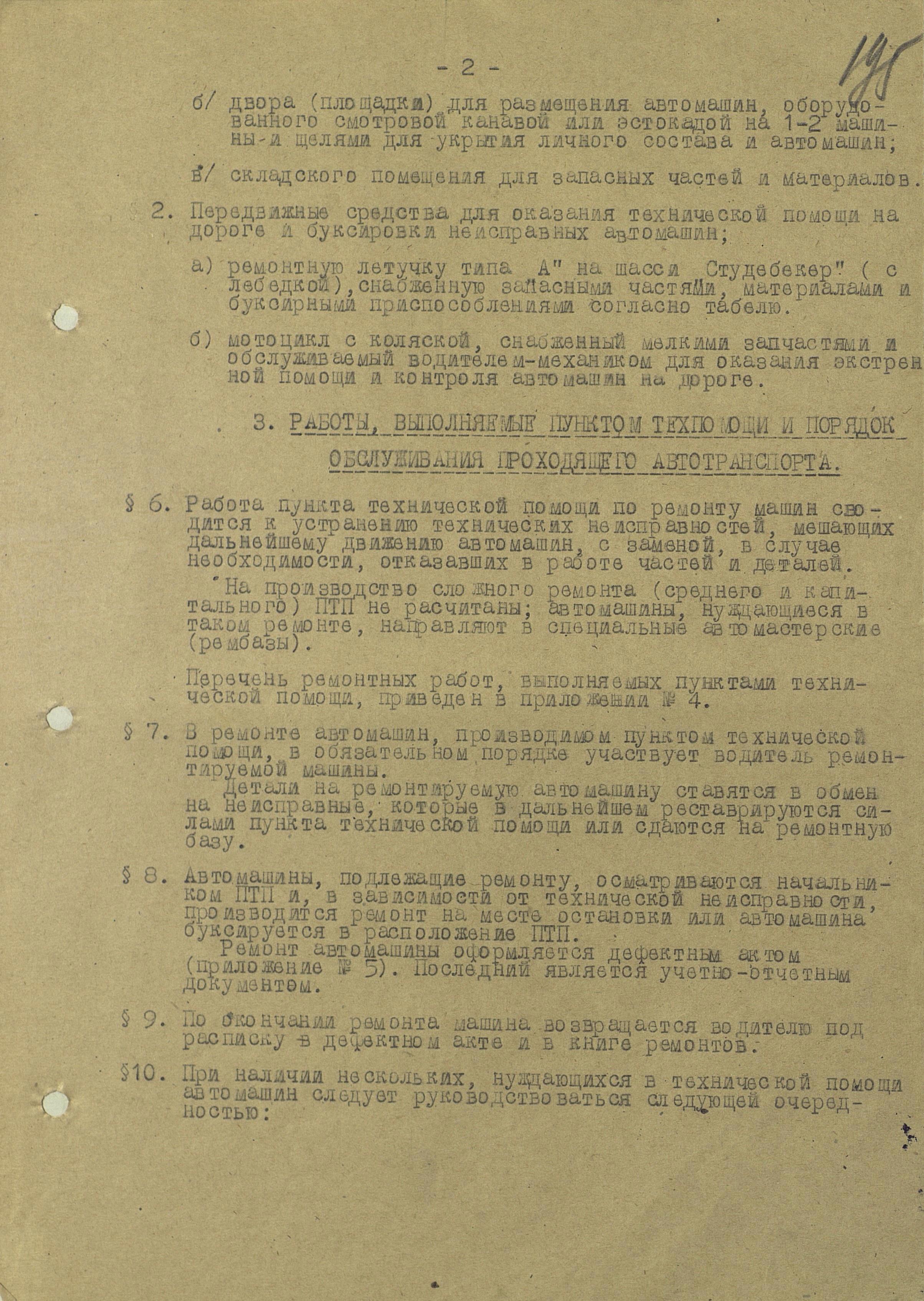 Не меньший интерес представляют пункты технической помощи (ПТП). Основной задачей было проведение работ по устранению технических неисправностей, мешающих дальнейшему движению автомашин, но, в случае необходимости, могли провести замену отказавших в работе частей и деталей. На производство сложного ремонта (среднего и капитального) ПТП рассчитаны не были.