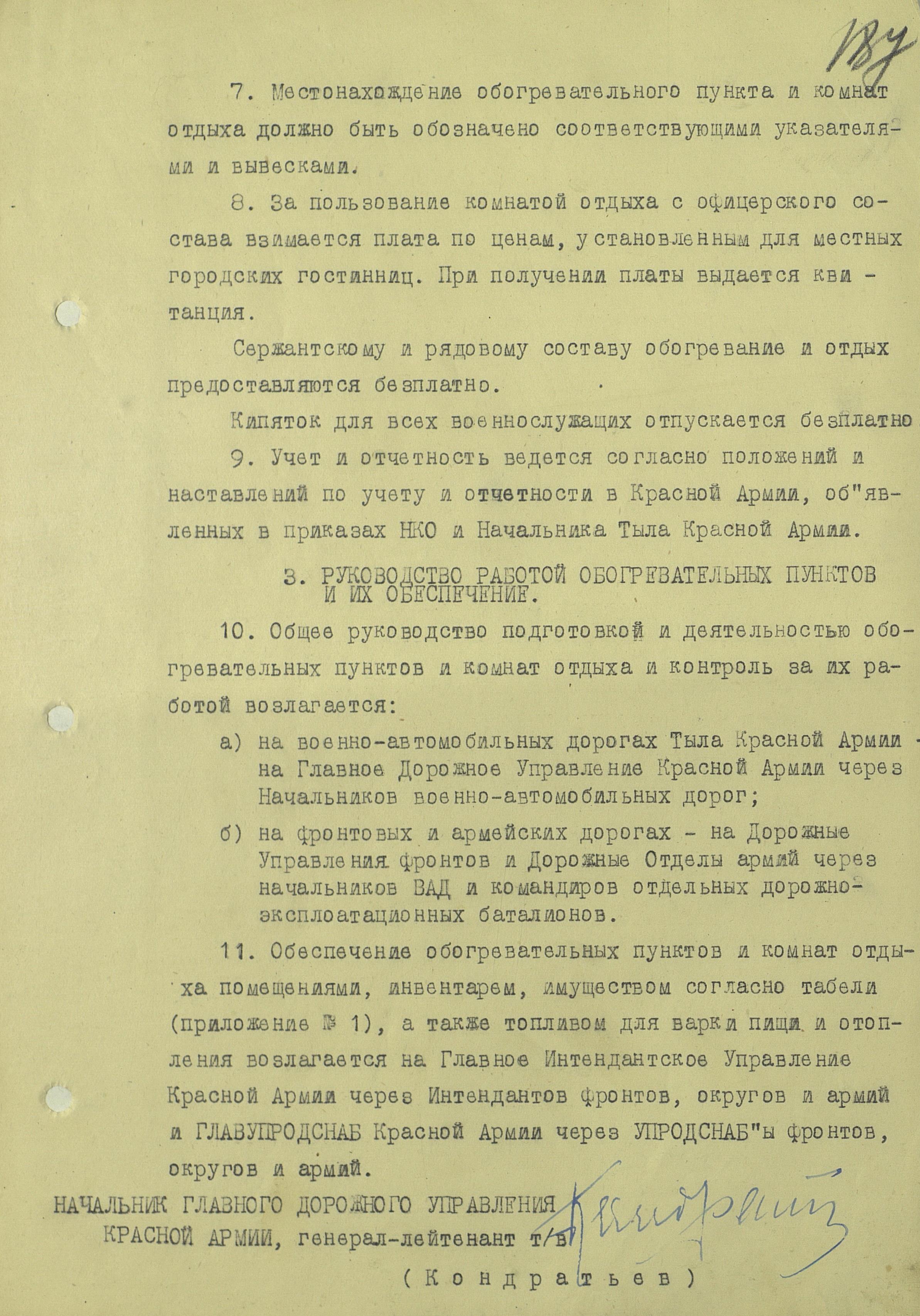 На первый взгляд кажется, что в развертывании комнаты отдыха или пункта обогрева ничего сложного нет. Достаточно поставить несколько палаток, обеспечить их печками, топчанами, ну и конечно назначить истопников и наряд. Вполне возможно, до выхода приказа так оно и было, а вот после... Одно можно сказать точно - при выполнении требований начальника Тыла Красной Армии, пункты отдыха стали (по меньшей мере - должны были стать) более комфортными, удобными, предоставляющими возможность нормально отдохнуть и набраться сил.