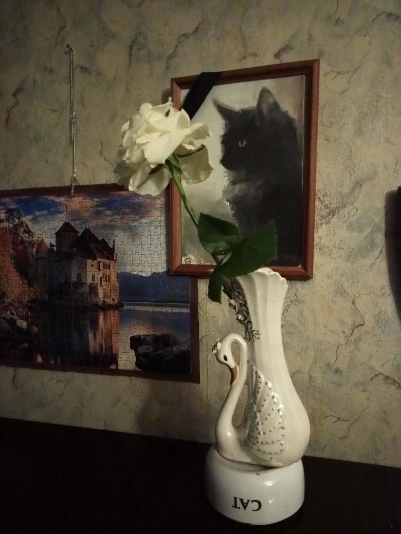 Только белая роза печально стоит под портретом,
