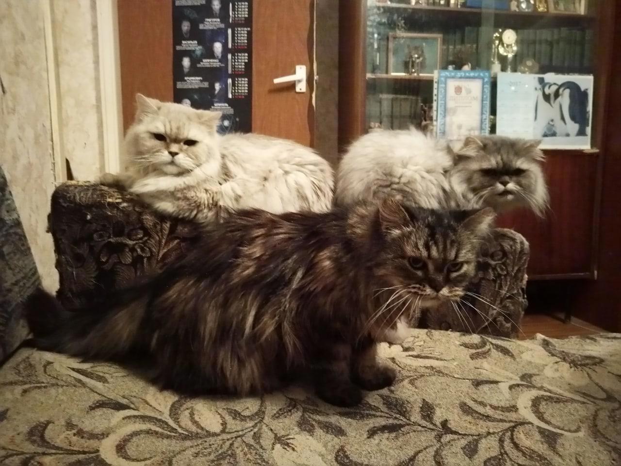 Старый родительский прайд тоже ушел весь, следом за остальными... Масяня (17) и Рысь (12,5) - 28 и 29 января. Первые дни после НГ они еще играли, но прогноз оказался верен, и рак довершил начатое. Вот они задолго до того, все вместе, с Пушкой - уже не совсем здоровые, но еще полные сил.