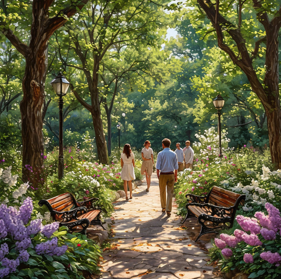 Майский ветер шумит молодой листвой, солнце делает её малахитовой, отбрасывая кружевные тени. Девушки в лёгких платьях, парни в рубашках с расстёгнутыми воротничками. Гуляют, смеются, едят мороженое.