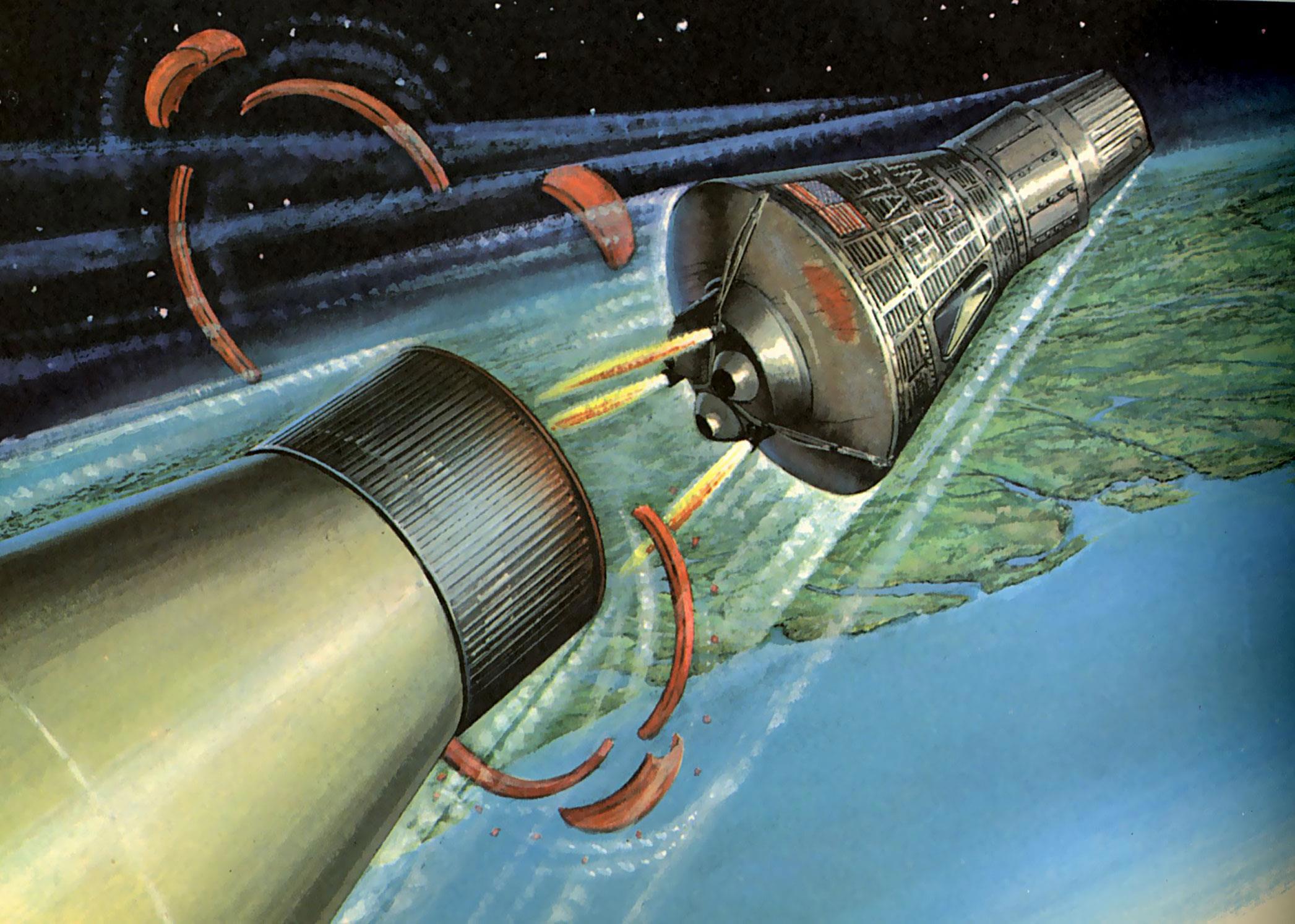 Отстыковка космической капсулы Джемини от ракеты-носителя