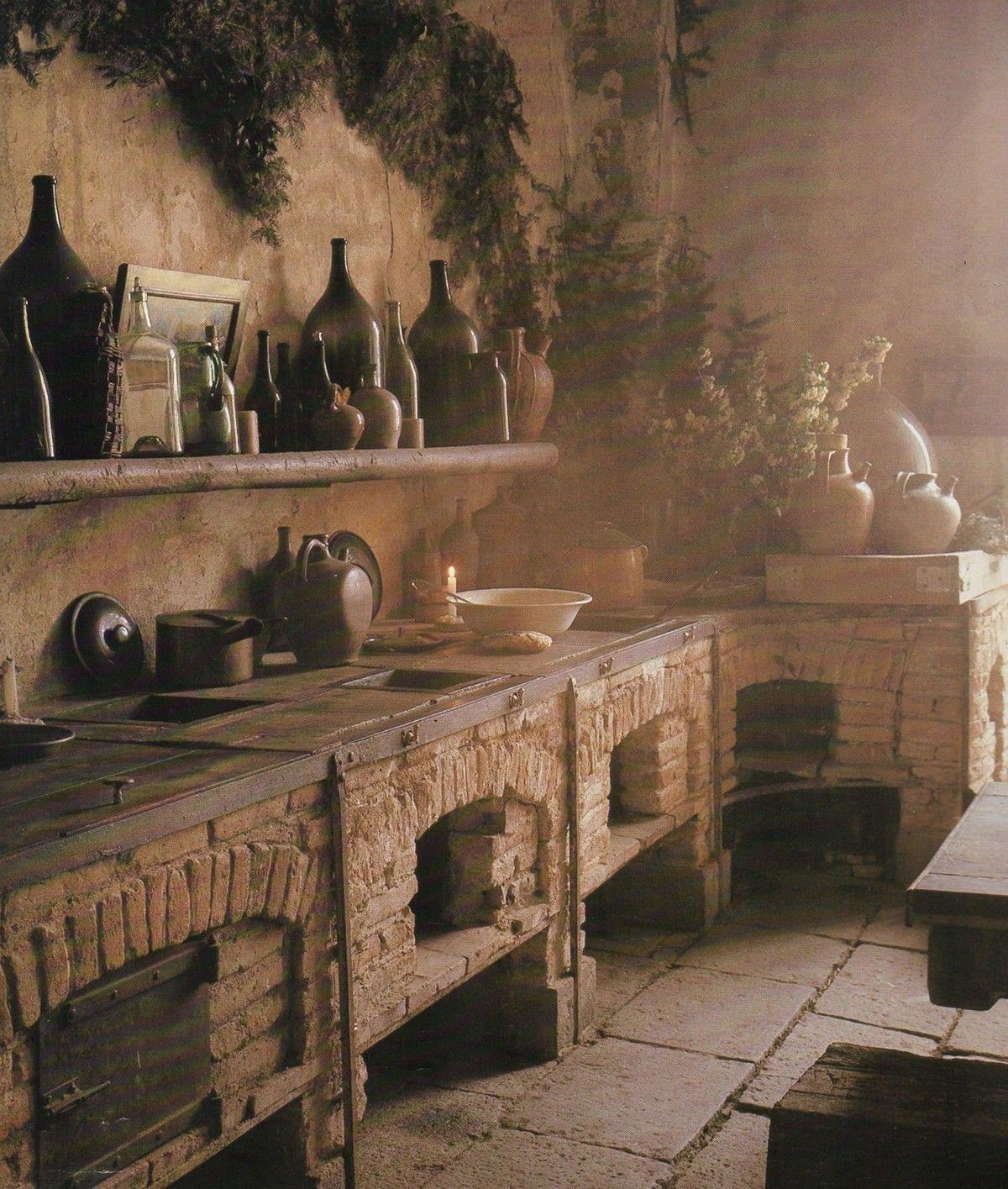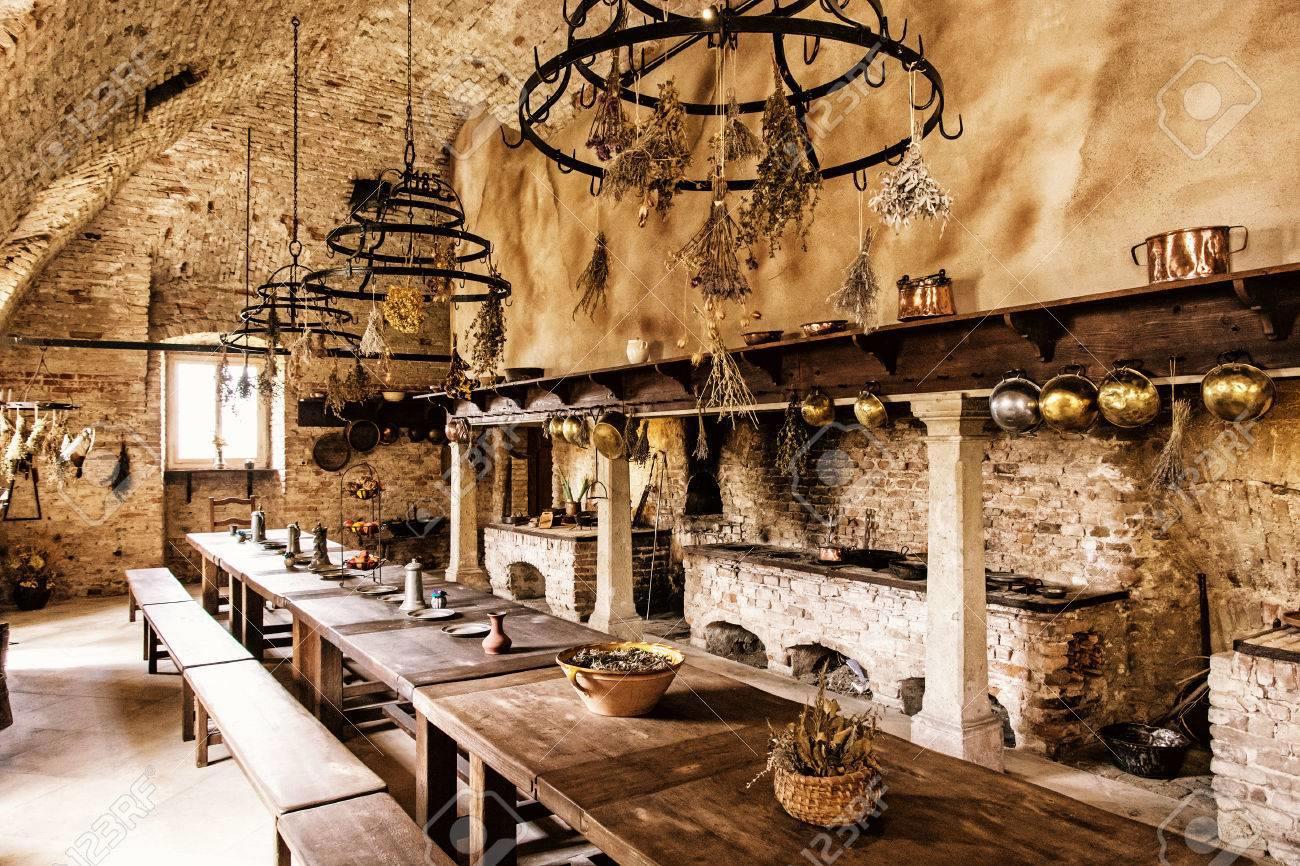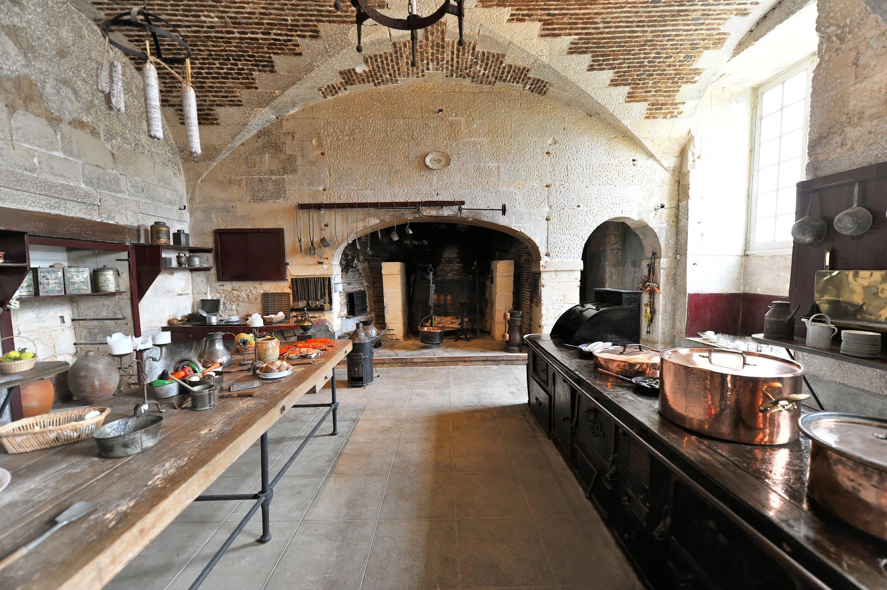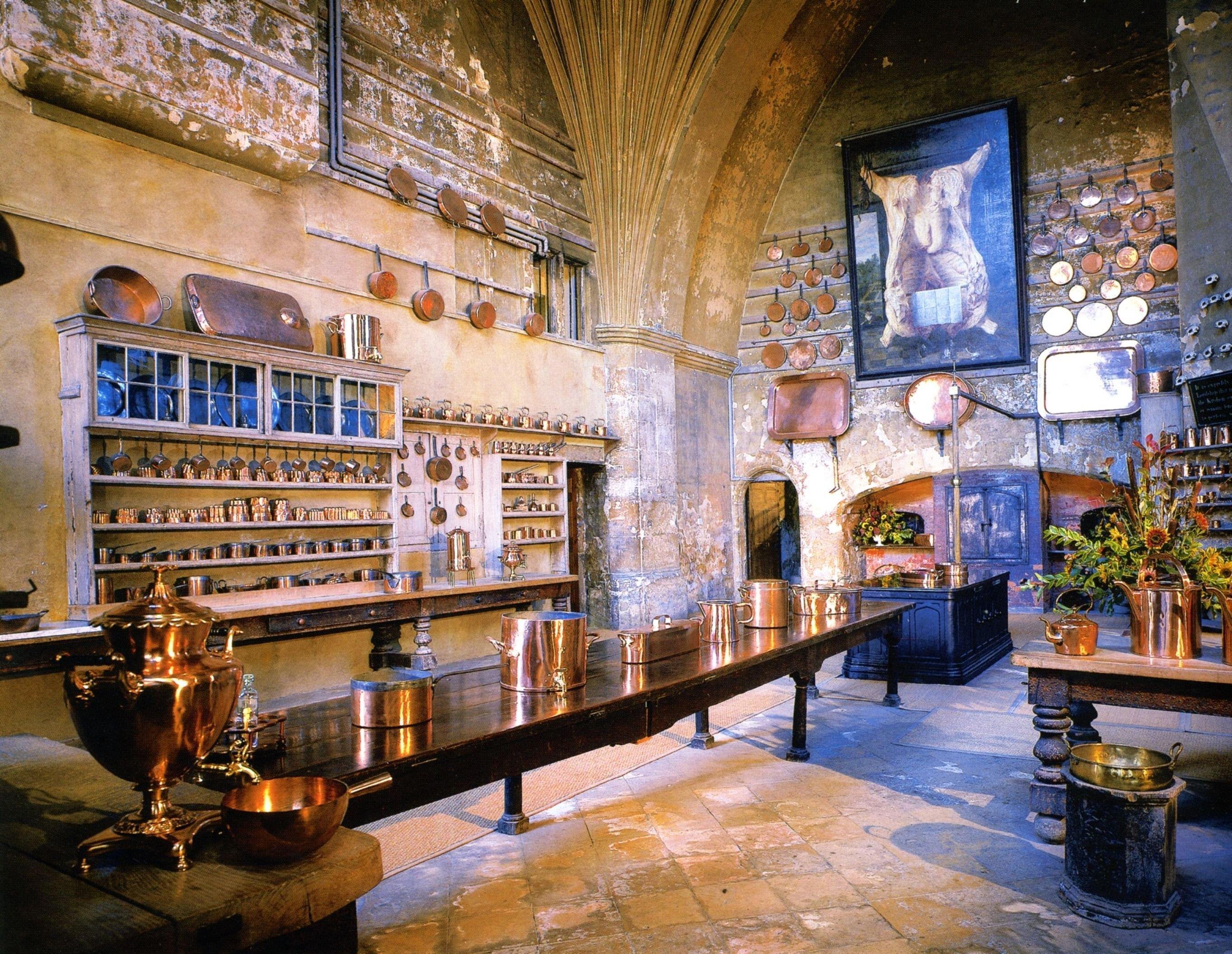 Однако, несмотря на знакомую кухонную суету, кое-что здесь выглядело непривычно. Например — отсутствие плит и духовых шкафов. Вернее, их прообраз уже существовал, но в очень архаичном исполнении. Тогдашняя "плита" представляла собой длинный, выложенный из огнеупорного кирпича стол с круглыми выемками. Внизу были отверстия для дров и розжига, а в паре мест — кованые дверцы, скрывающие кирпичные духовки. Без открытого огня, но с полной функциональностью — для запекания, томления и прочих чудес классической кухни.