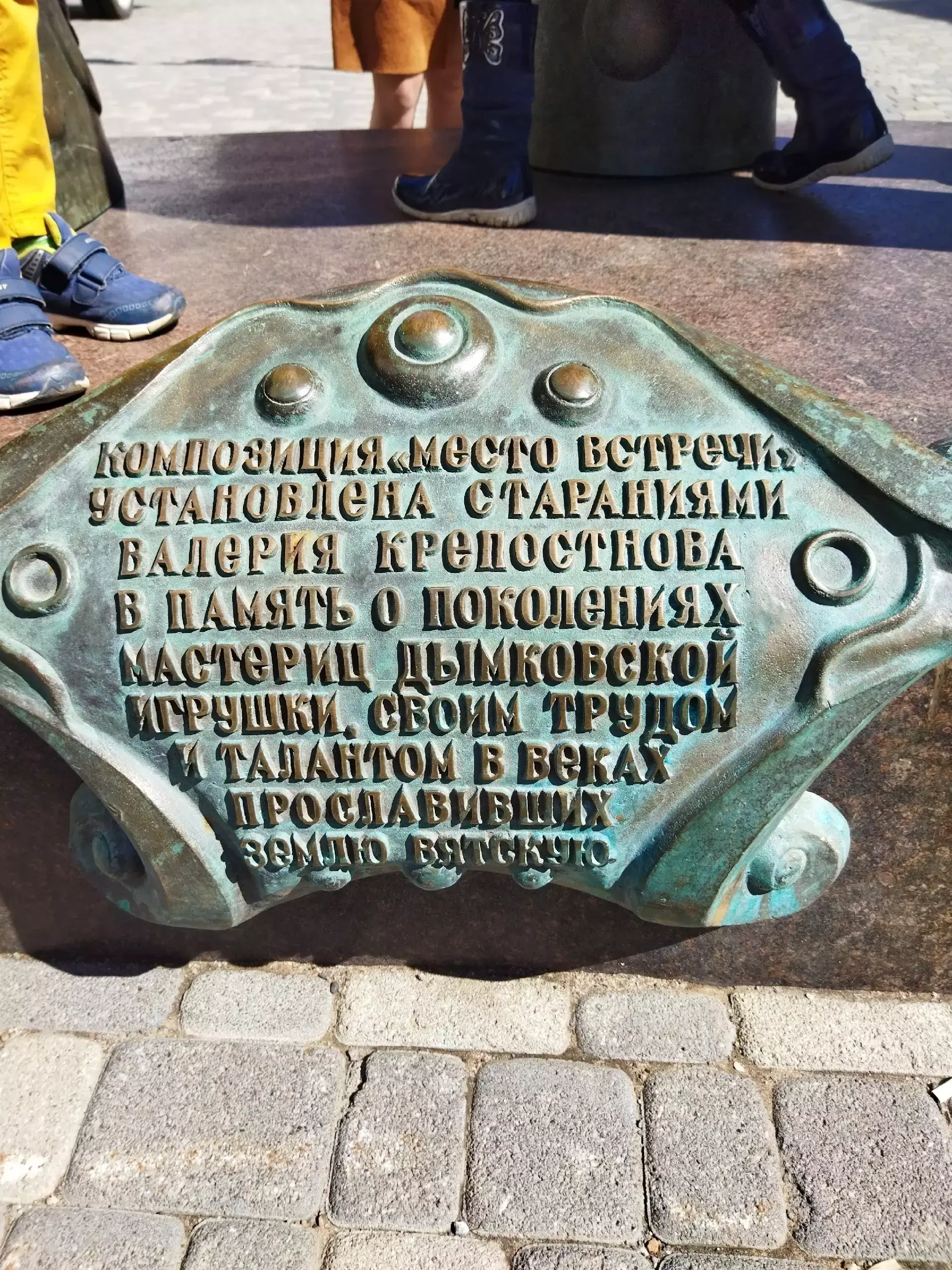 Надпись поближе. Там ещё много интересных скульптур, но все были облеплены детками)