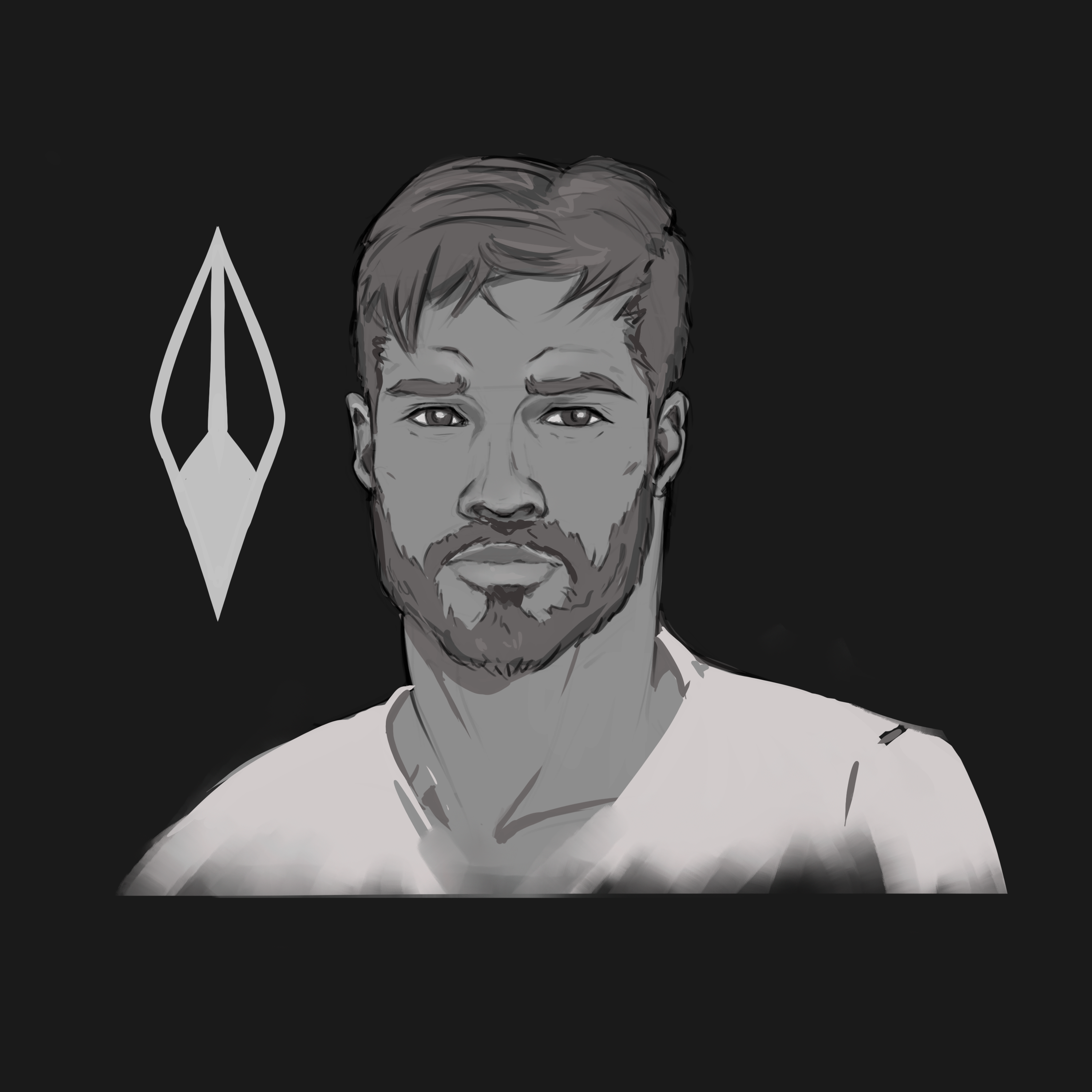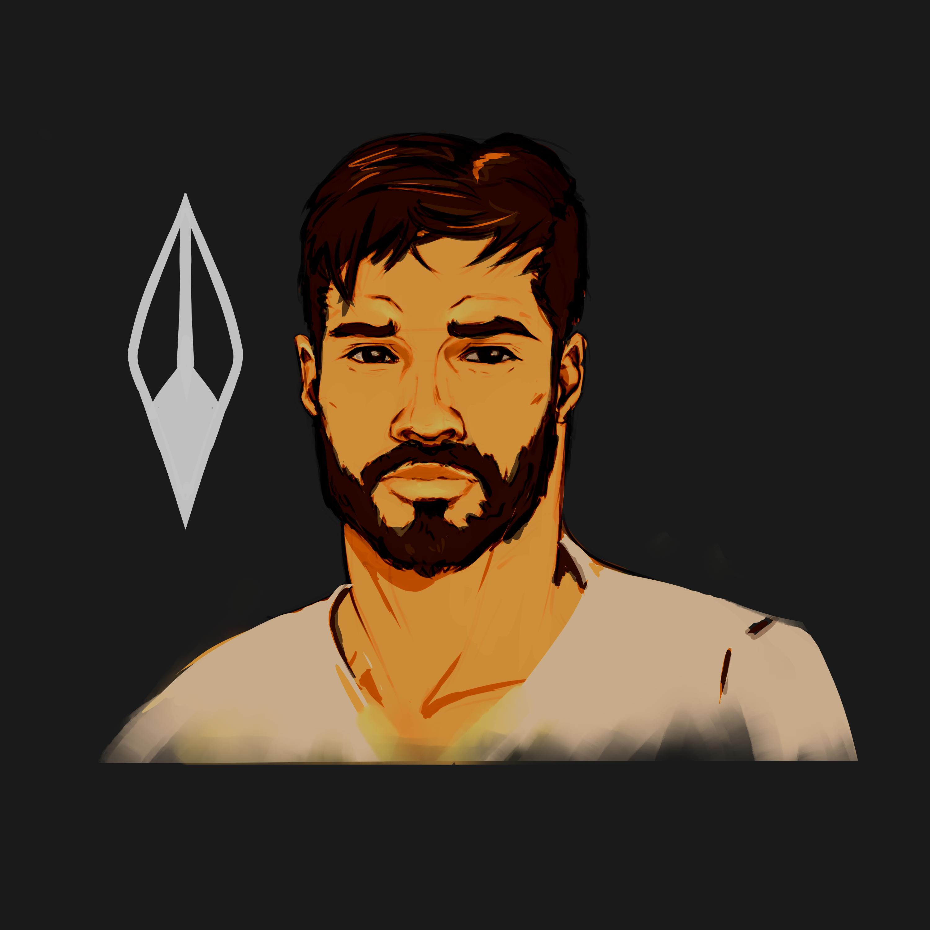 Первый его портрет, сделан на пробу. Рядом с ним - символ его Оплота.