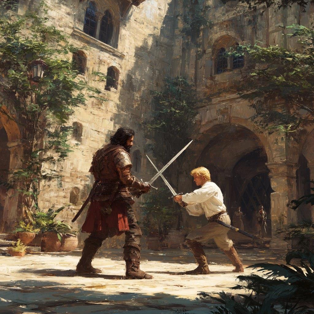 Но всё же это было гораздо больше того, чего мог ожидать Илмарт, поэтому последний был крайне заинтригован. Поединок их, и изначально лишённый боевого азарта, совсем уж стал напоминать тренировку. Илмарт скорее испытывал Дерека, пытаясь понять, насколько эффективен его способ боя, и довольно быстро перешёл в режим наставника, рявкая на неосторожности, требуя «ещё раз повторить вон тот приём» и давая ёмкие — зачастую нецензурные — характеристики рисунку атаки и защиты.