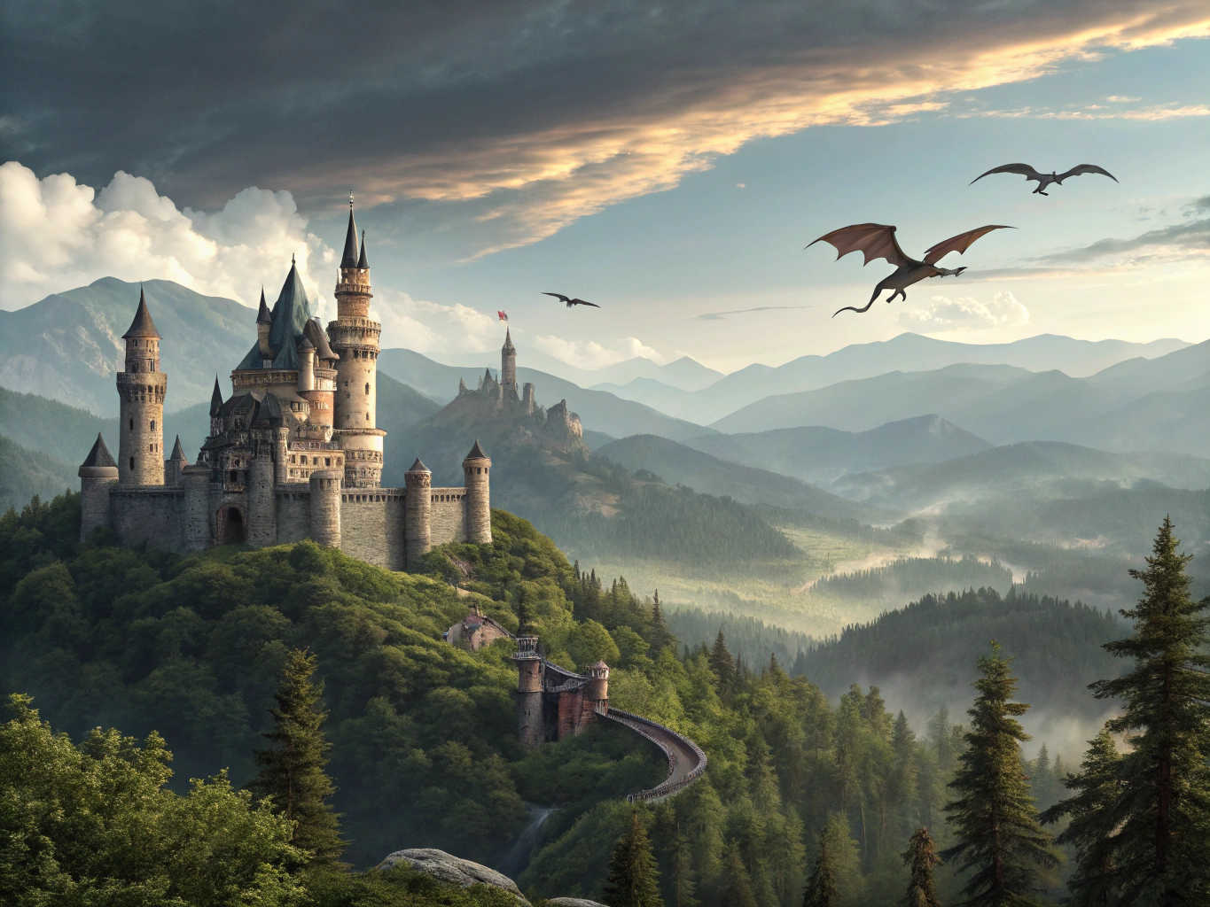 ️средневековый мир: замки, башни магов, мрачные леса, древние руины;