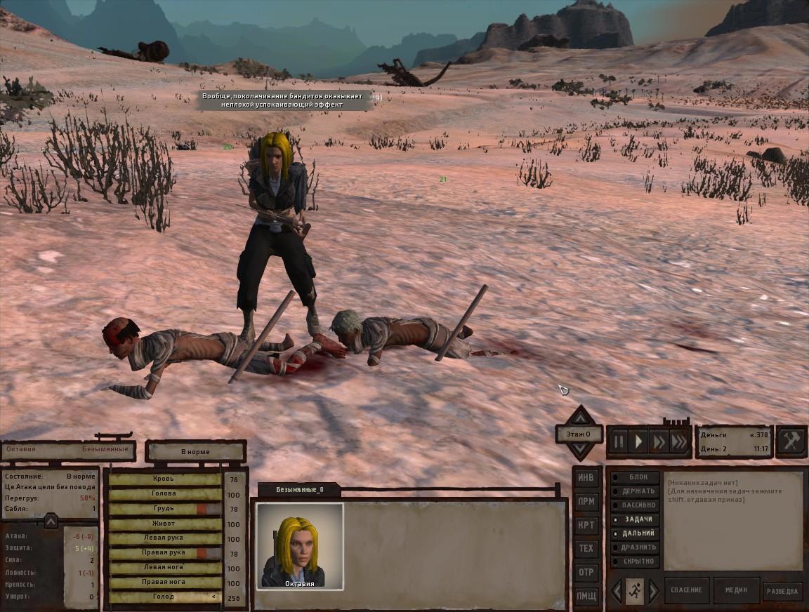 "Вообще, поколачивание бандитов оказывает неплохой успокаивающий эффект..." - говорит Октавия.