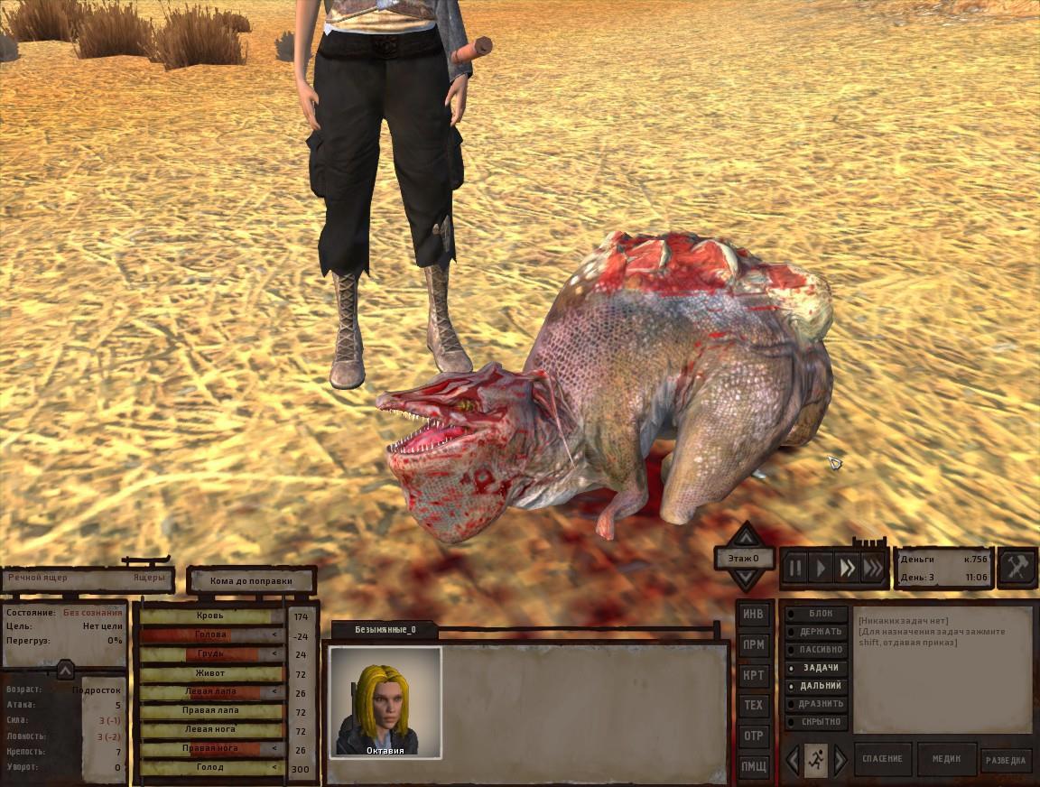 После чего воодушевившись, Октавия отправилась за ворота прокачивать навыки, убивая больных и обездоленных...