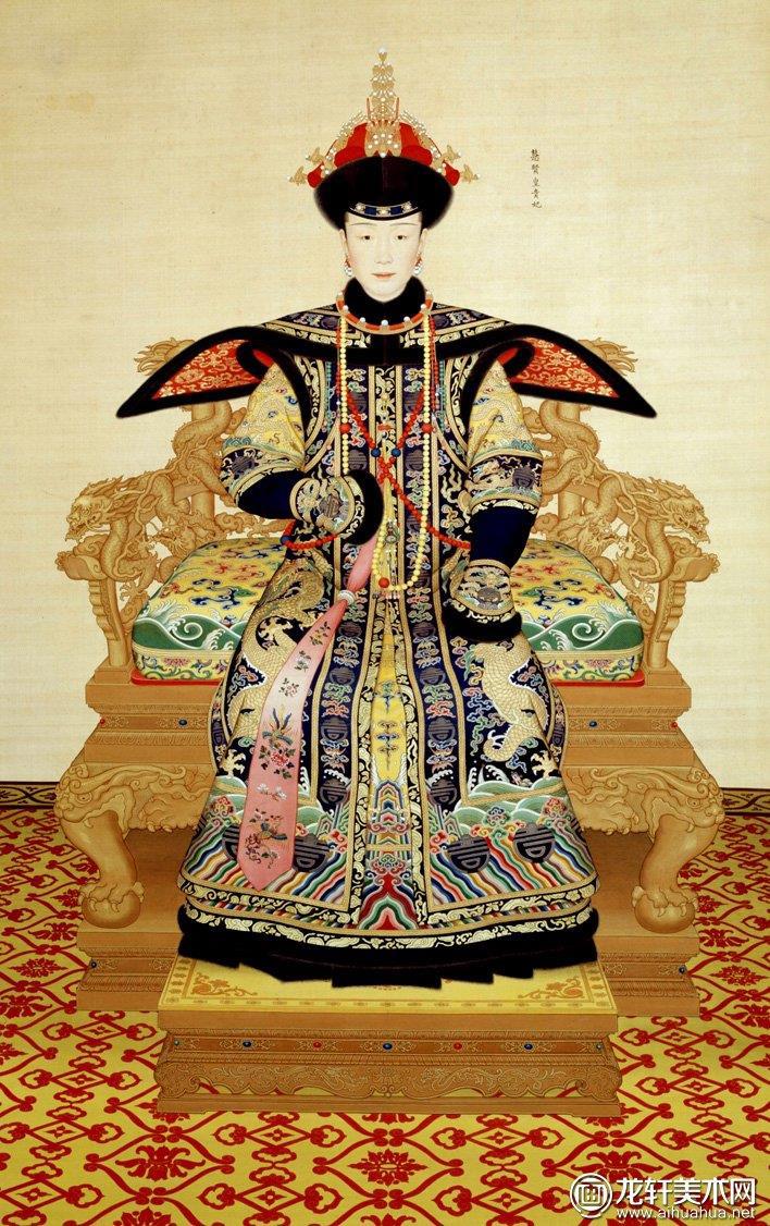 Портрет императрицы Сяосяньчунь 孝贤纯, первой императрицы императора Цяньлуна, в официальном наряде с опущенными отворотами ваха (начало 18 в.)