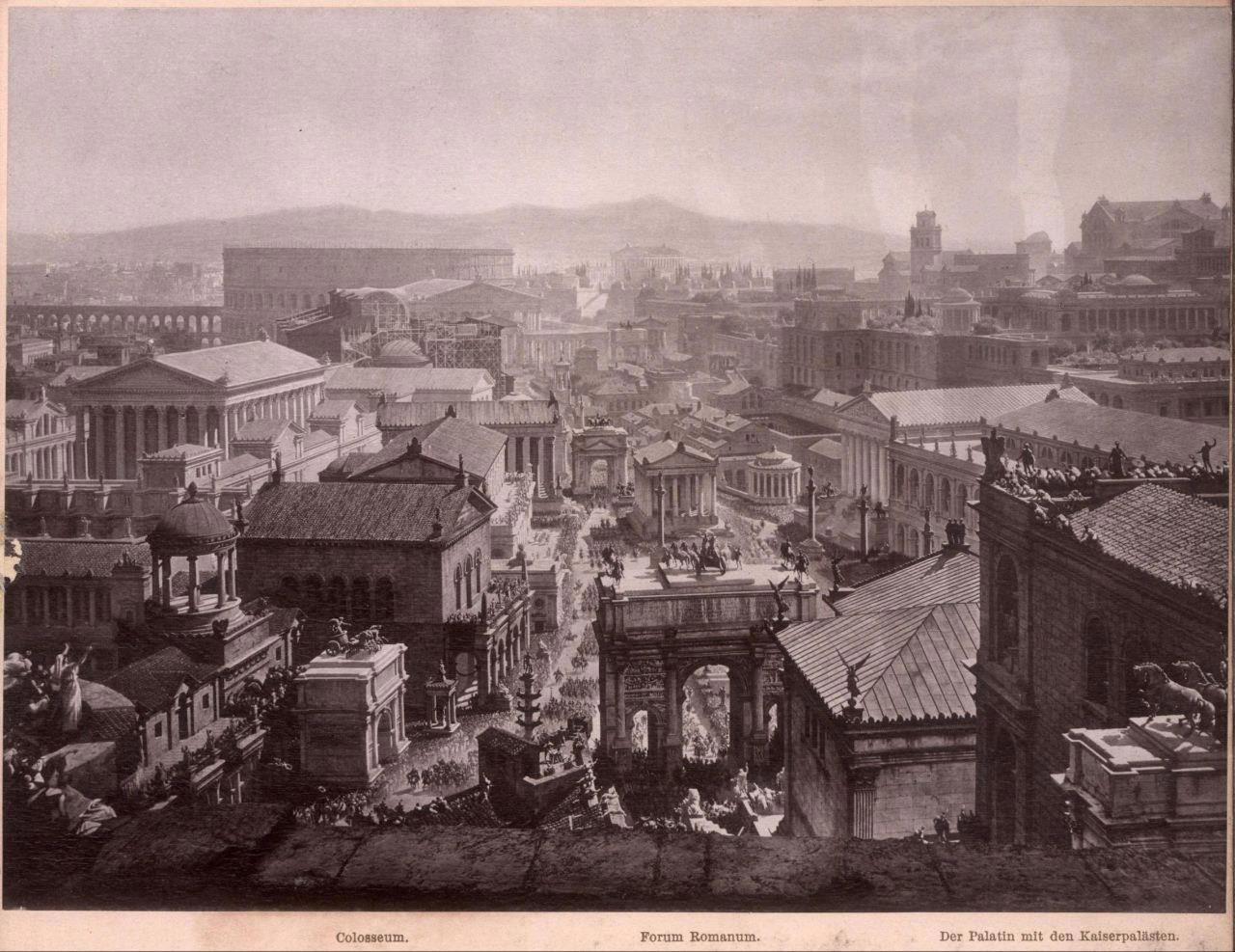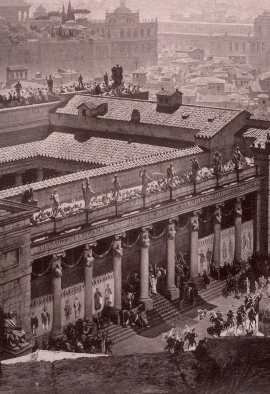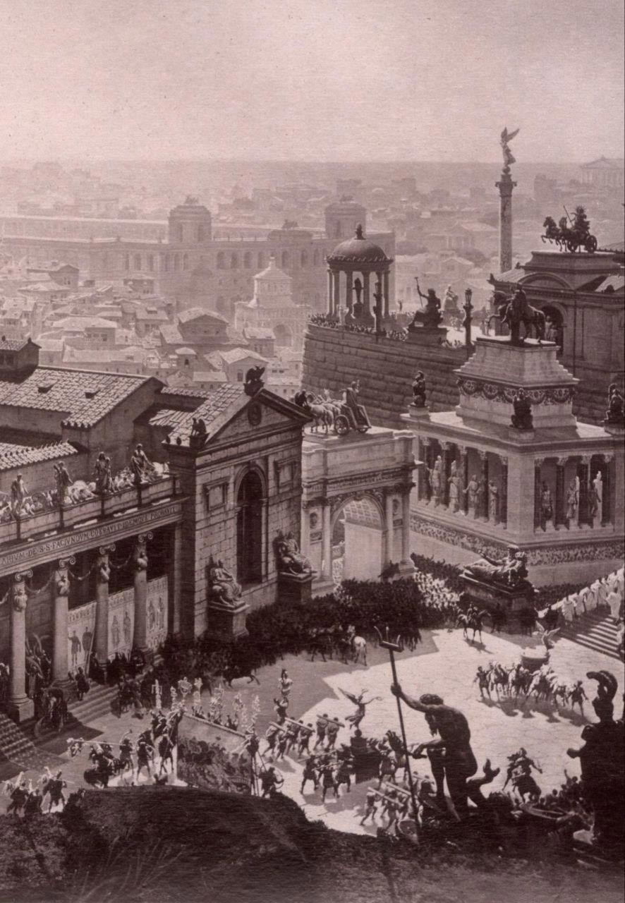 Автор: Господин N.Эти потрясающие фотореалистичные панорамные изображения Рима созданы профессорами из Мюнхена И. Бюльманом и А. Вагнером в 1892 году, и отражают панораму всего Рима по состоянию на 312 год н.э., в день триумфа императора Константина, со всеми его великими памятниками до того, как они были разрушены.