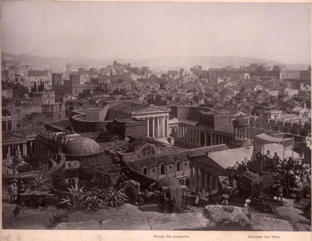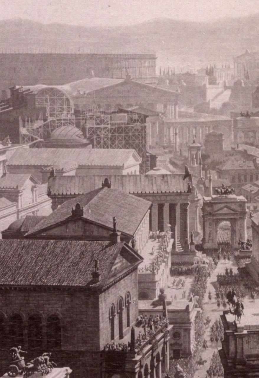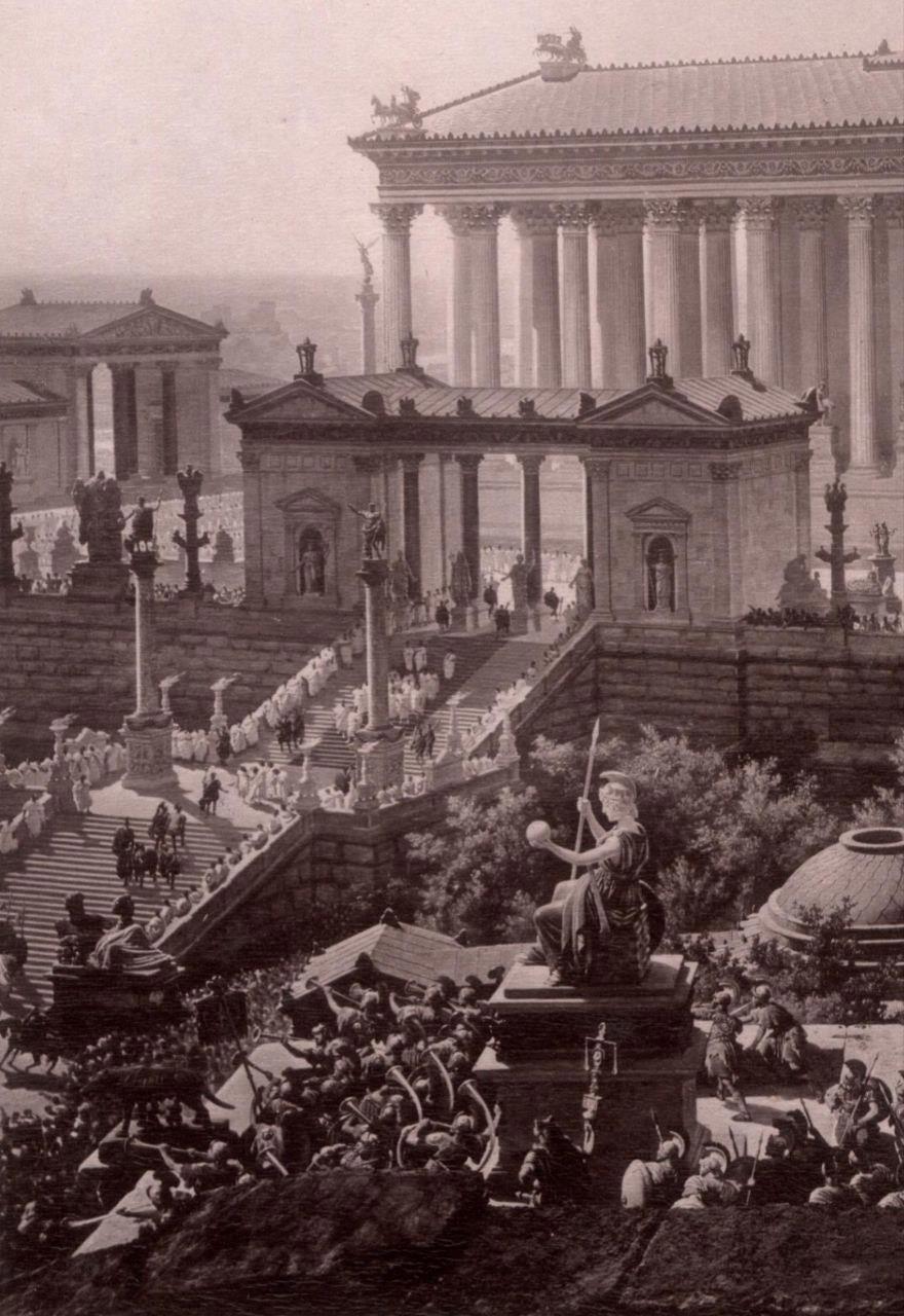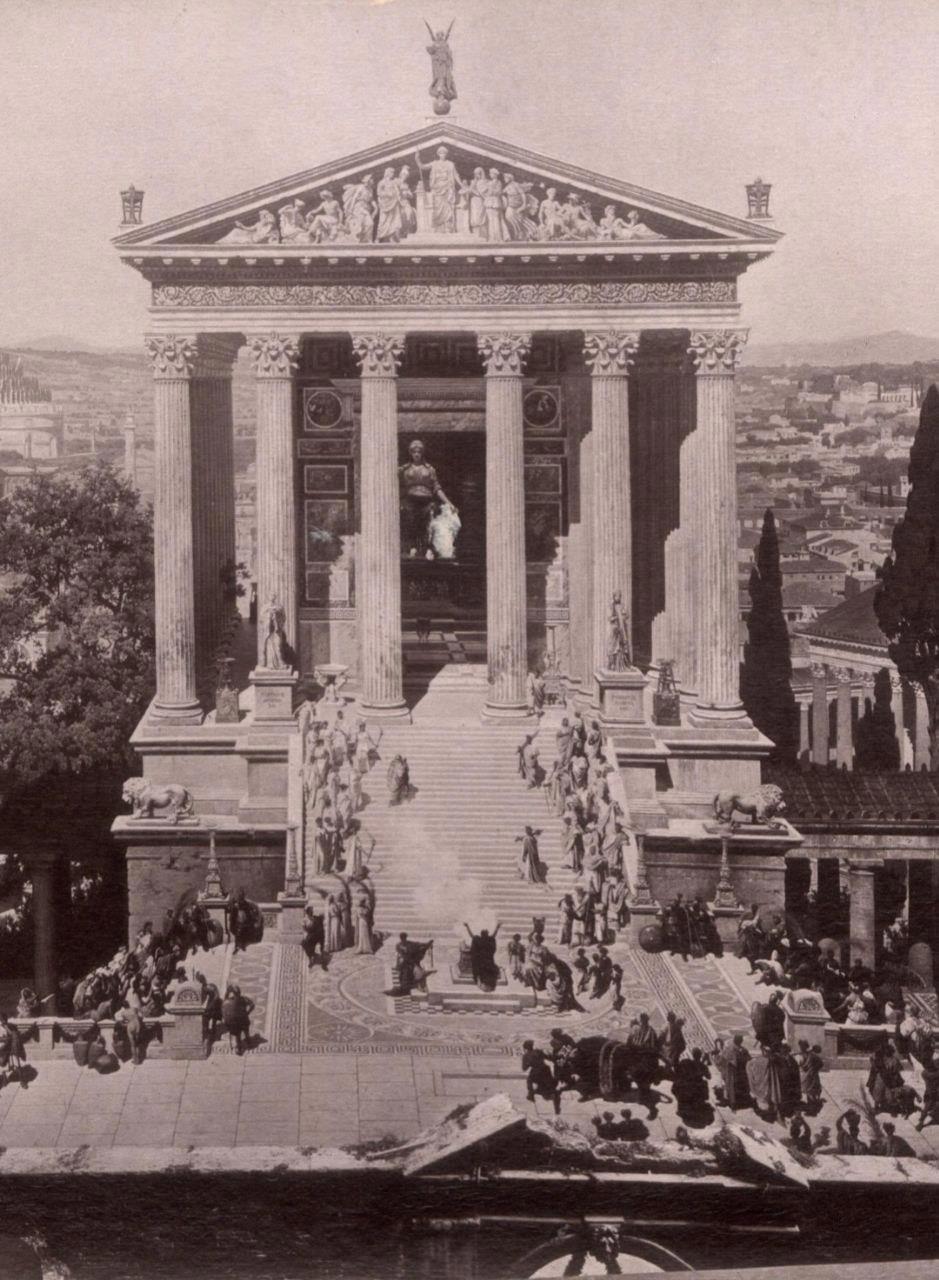 Автор: Господин N.Эти потрясающие фотореалистичные панорамные изображения Рима созданы профессорами из Мюнхена И. Бюльманом и А. Вагнером в 1892 году, и отражают панораму всего Рима по состоянию на 312 год н.э., в день триумфа императора Константина, со всеми его великими памятниками до того, как они были разрушены.