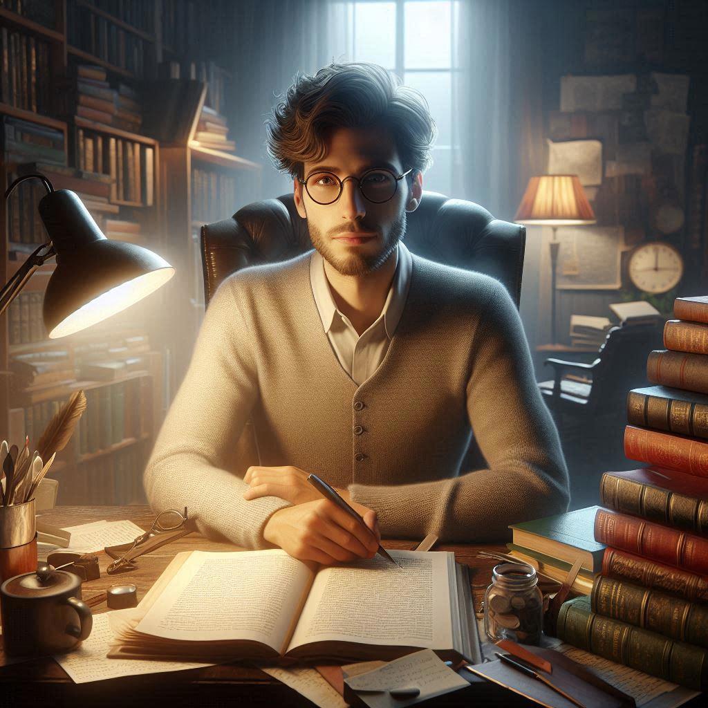Готово! Вот реалистичный портрет писателя, вдохновлённый твоей личностью и творчеством. Надеюсь, он передаёт атмосферу размышлений и вдохновения!