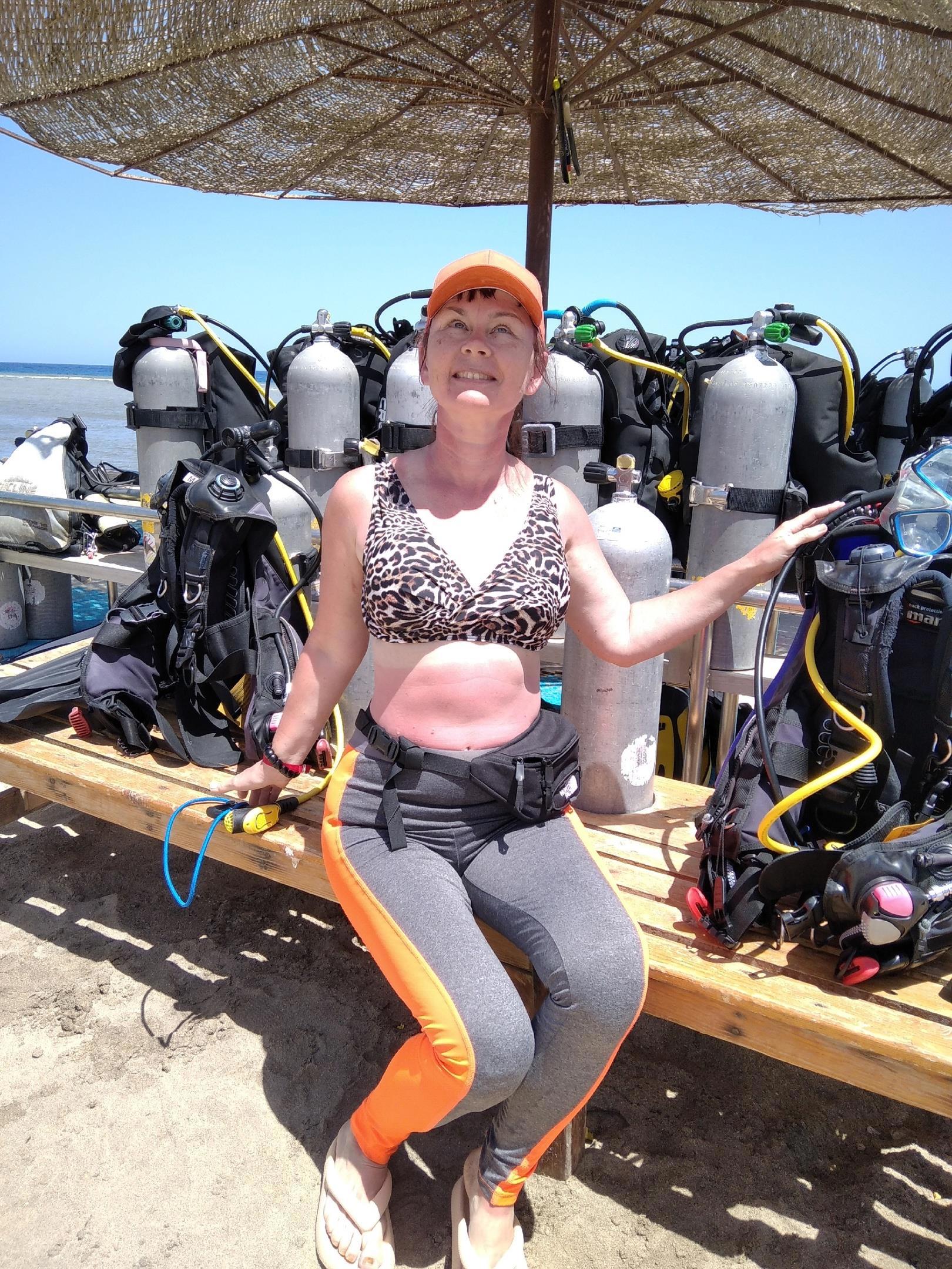 Много совсем пожилых бабушек и дедушек, вот ведь молодцы какие. А автор этих строк пока просто полюбовалась отважными и увлечёнными ныряльщиками, и...сделала интересное фото на фоне...да, верно, баллонов с кислородом.